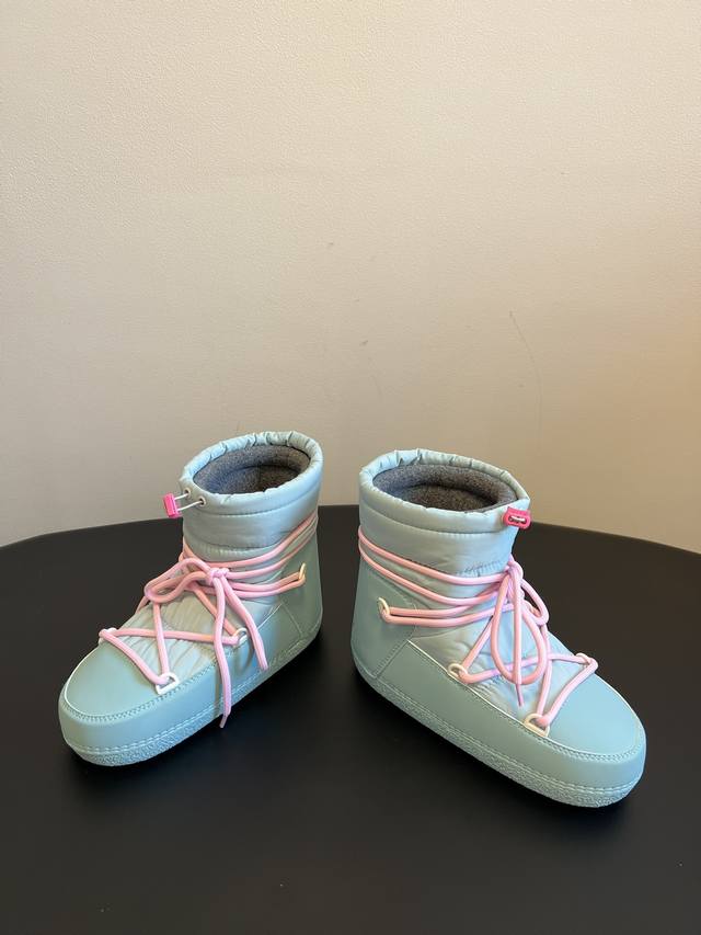 超级厚防水多巴胺新配色雪地靴!这款颜色真的超级多彩!搭配的超级好看!在寒冷的冬日的绵绵的冰雪下!新的多巴胺配色就想初生的朝阳一样耀眼夺目!侧面有品牌专属logo增加辨识度!内里也炒鸡厚实!非常适合滑雪运动哦!!