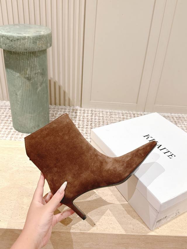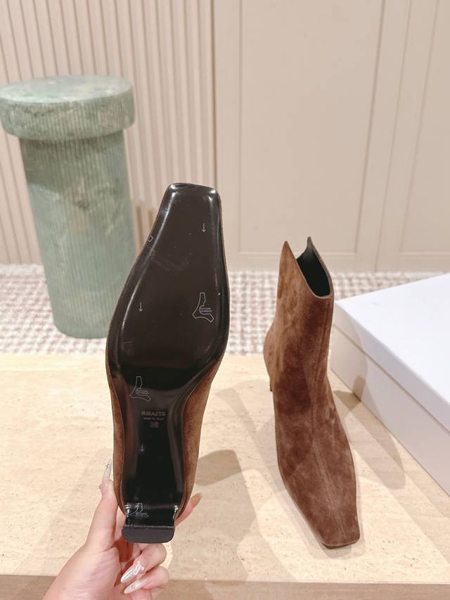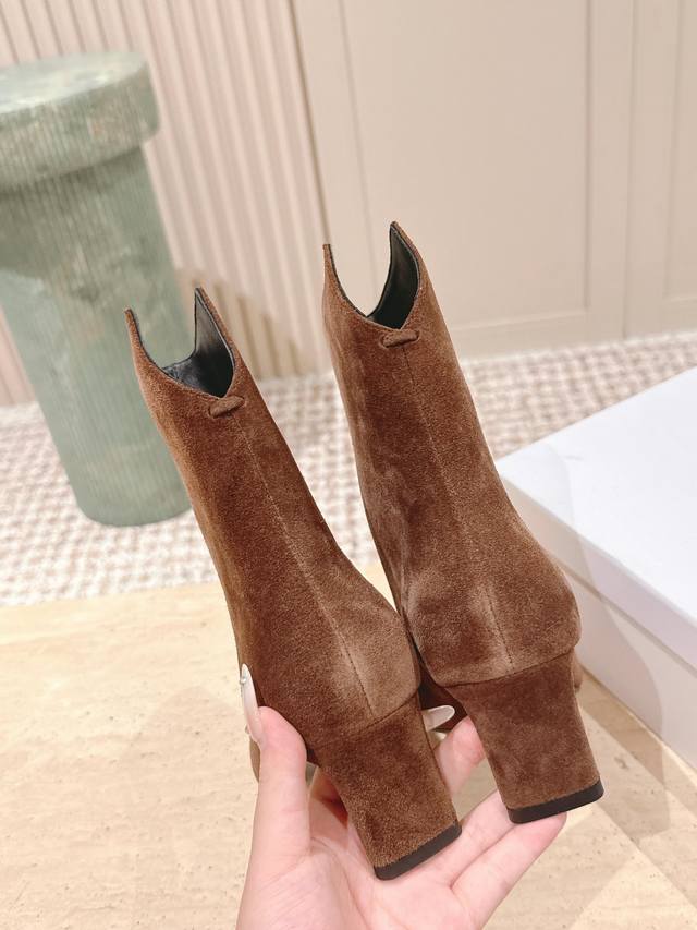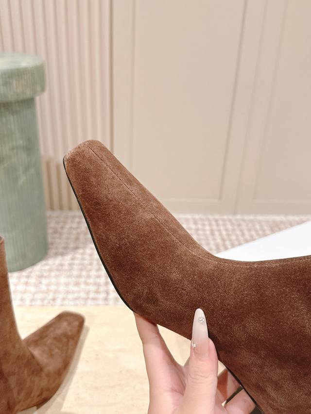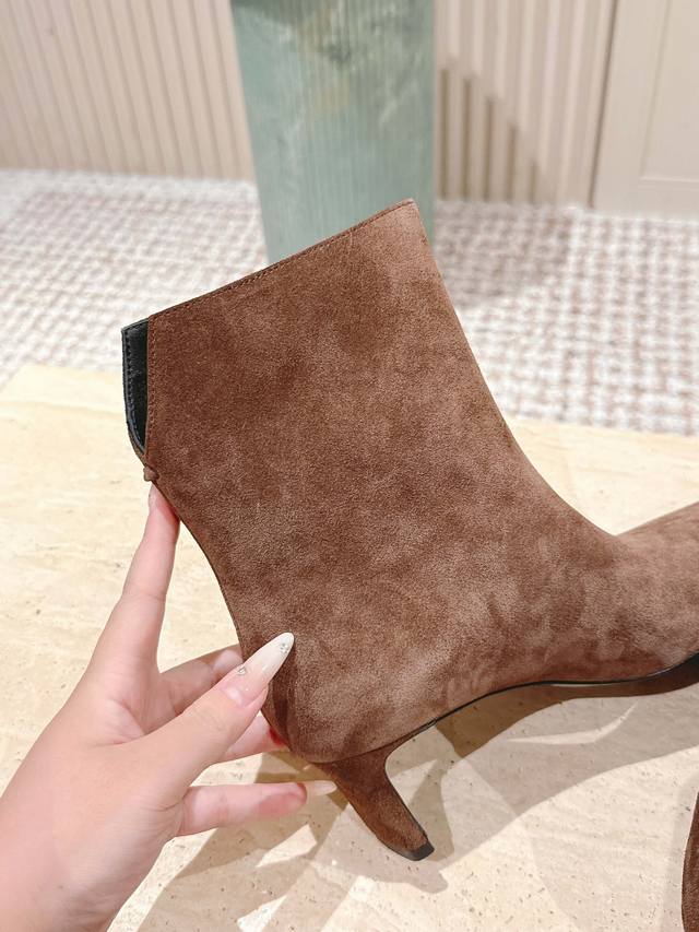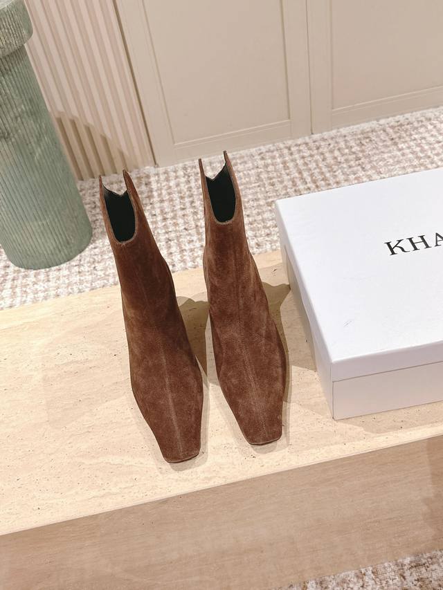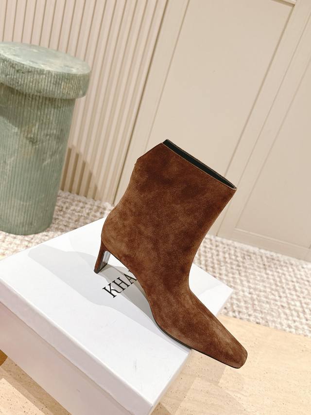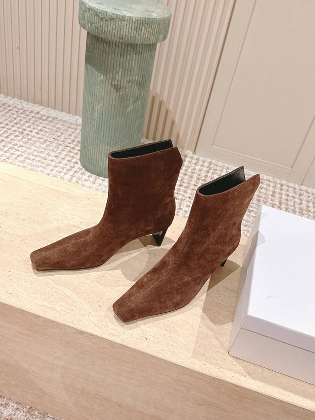 / 顶级版本: :Khaite 25秋冬新款短靴 小方头加小猫跟,很有腔调的 靴口有点斜切设计,新颖不单调! 好看好看,也很好穿搭,爱了爱 有一脚蹬和后拉链两个版面
