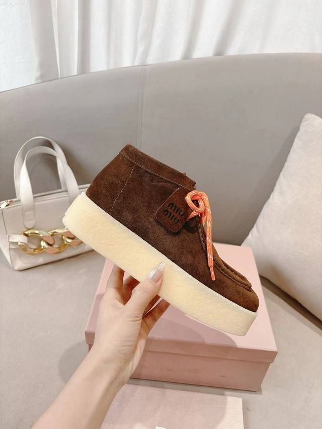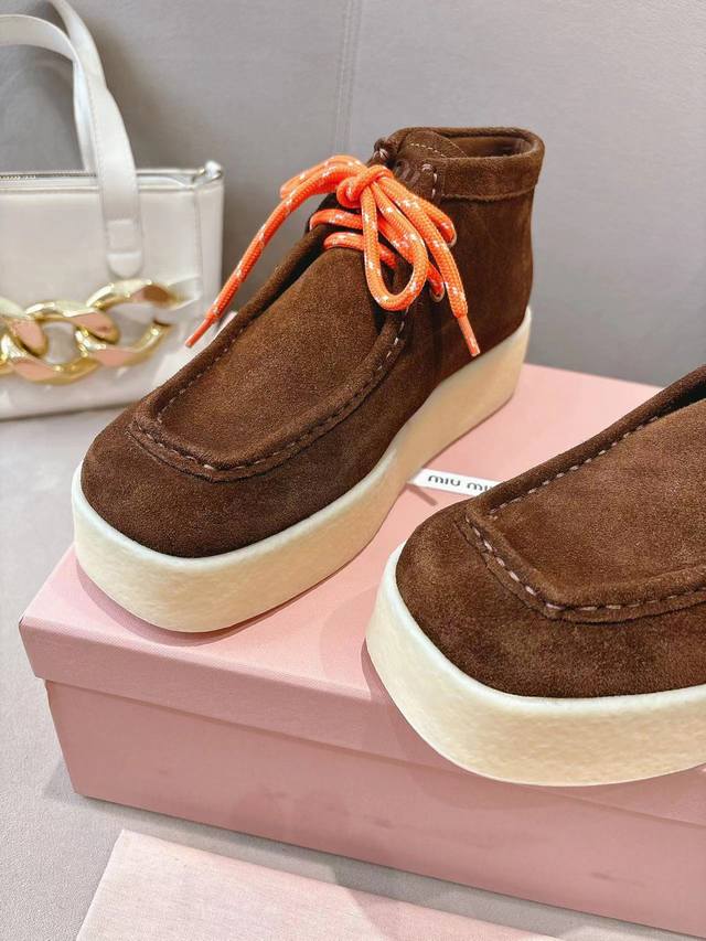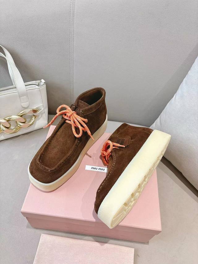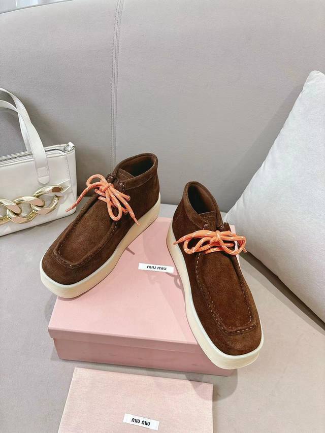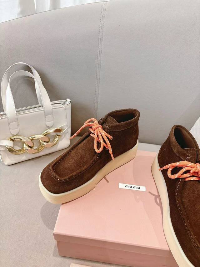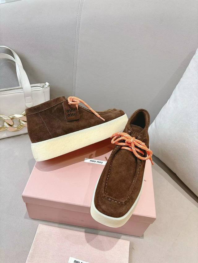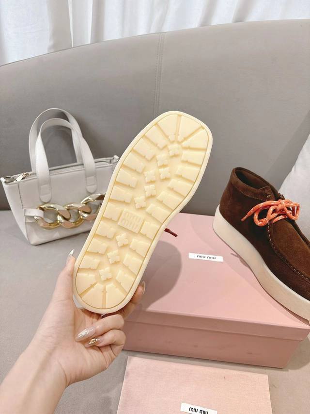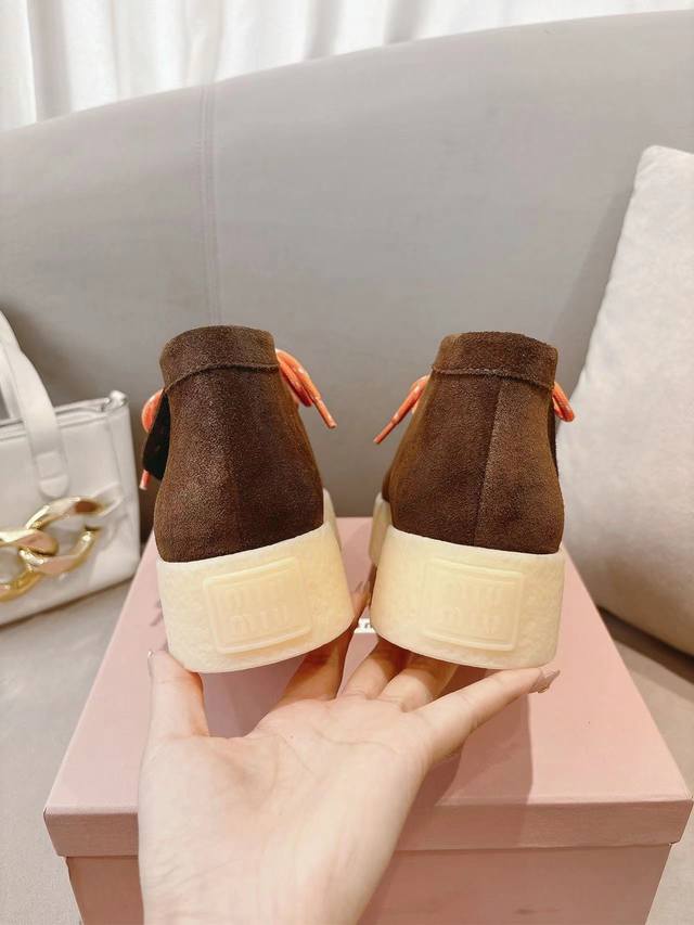 顶级版本 Miumi*24新款复古厚底方头牛津抽绳短鞋 好好看,不仅增高,底也不沉,这款鞋子强烈推荐上脚,也太好穿了吧,鞋带上还有logo的小名牌,更添加一丝灵