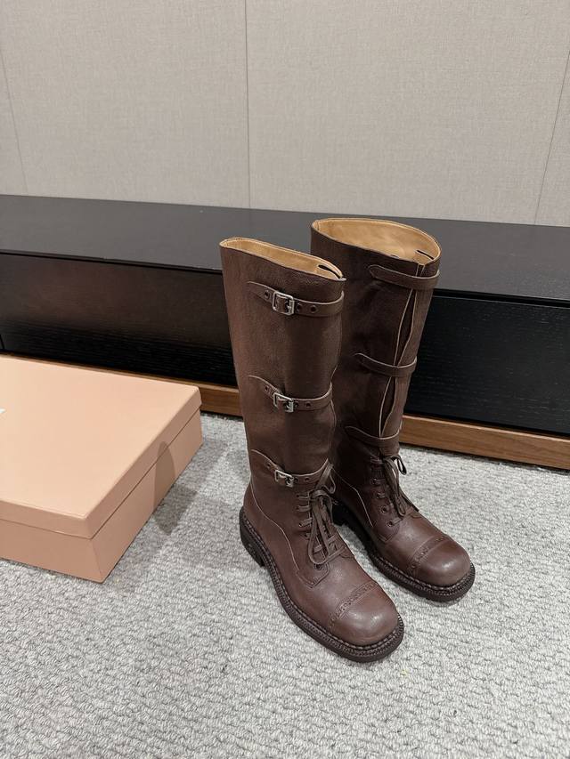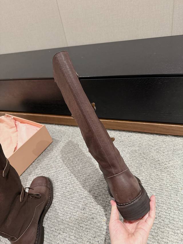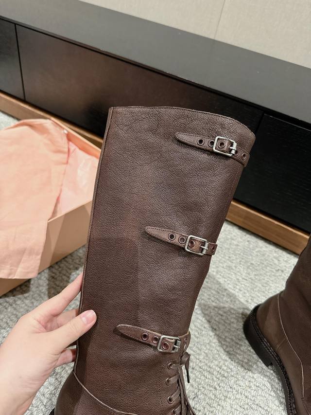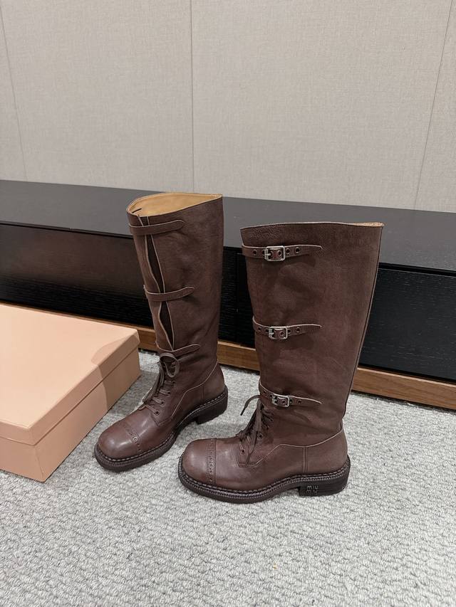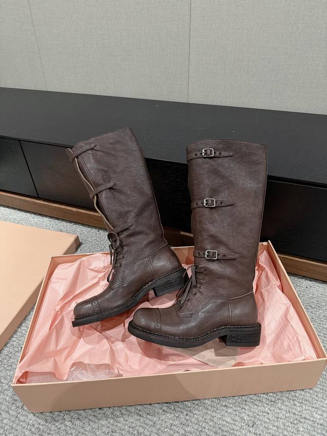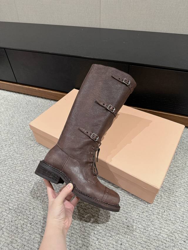 顶级版本 Miumiu Fw24 New Arrival~ Miu Miu 24秋冬秀款 长靴新品 经典机车靴造型,帅气 时髦摩登 鞋面 植糅小牛皮,质感超好
