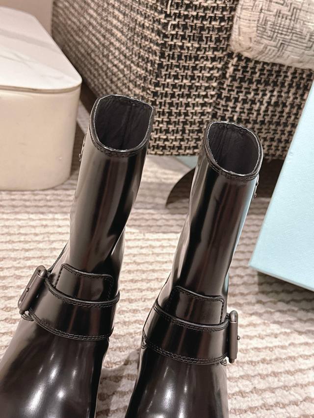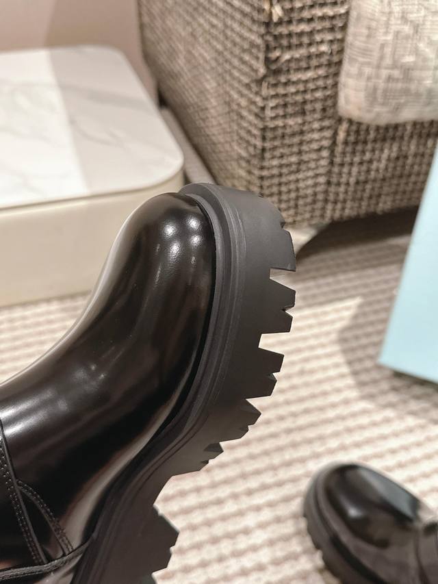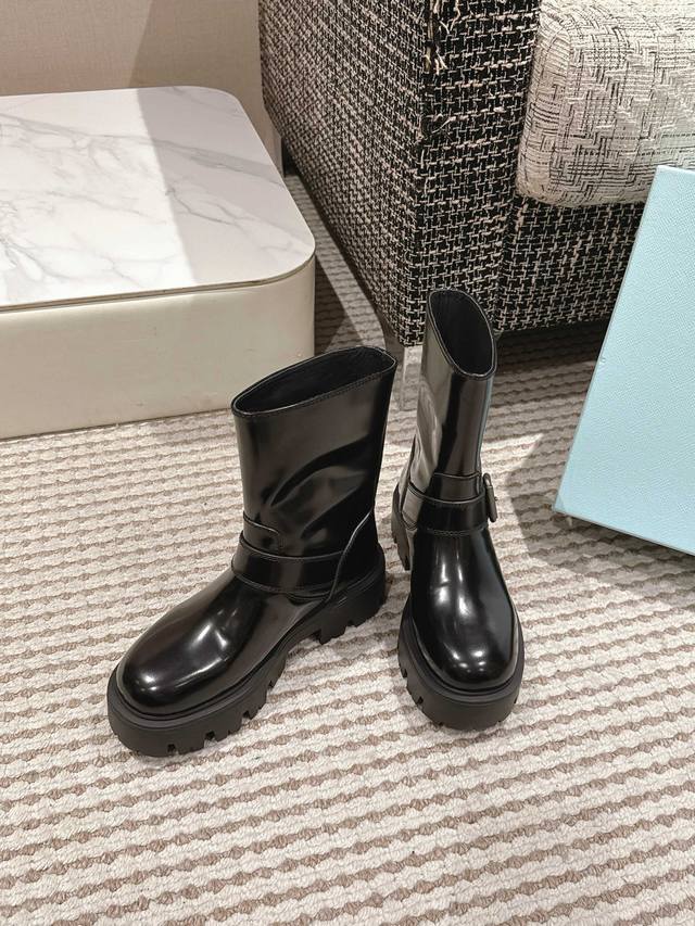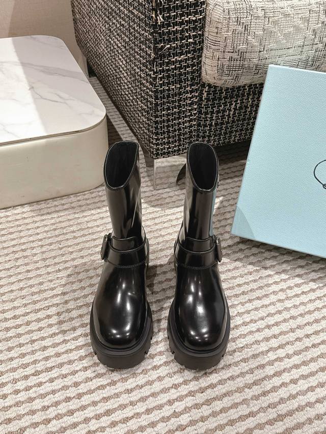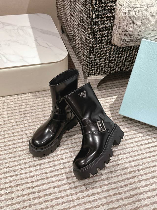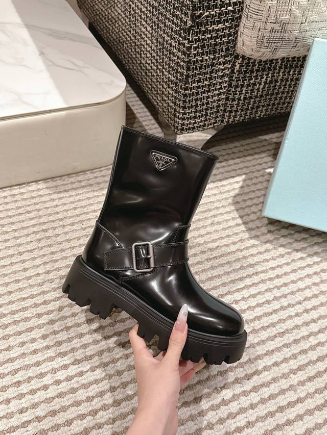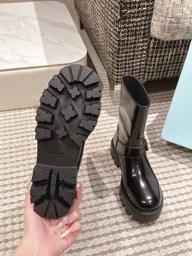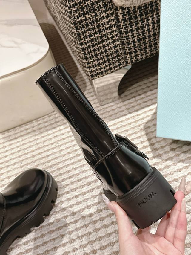 prada 2025秋冬新款经典三角标厚底一脚蹬短靴!
