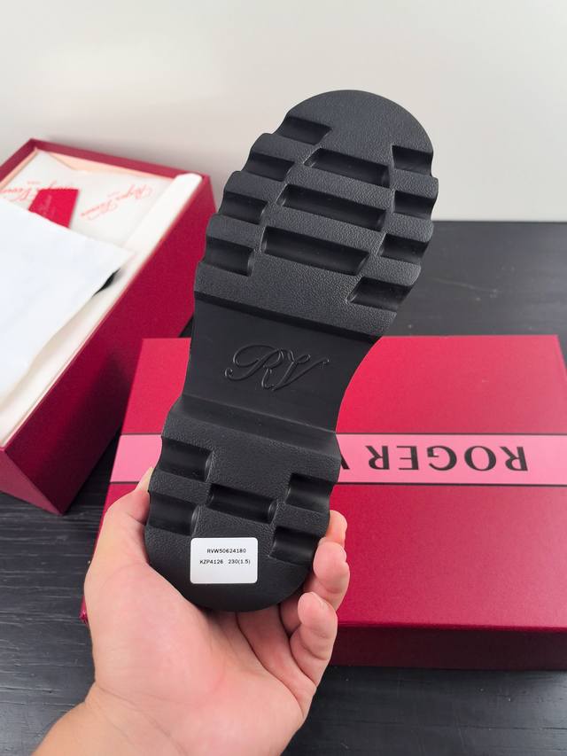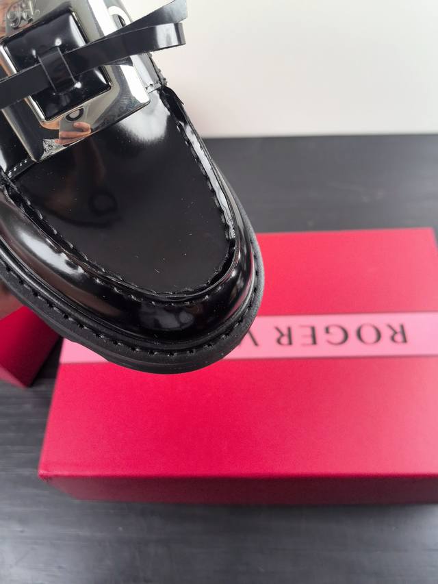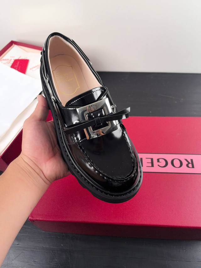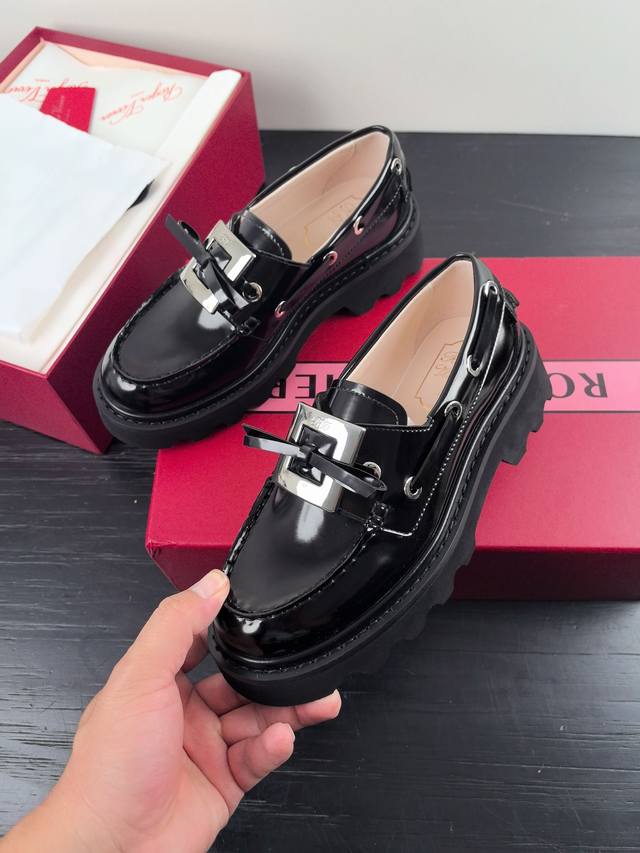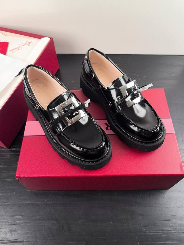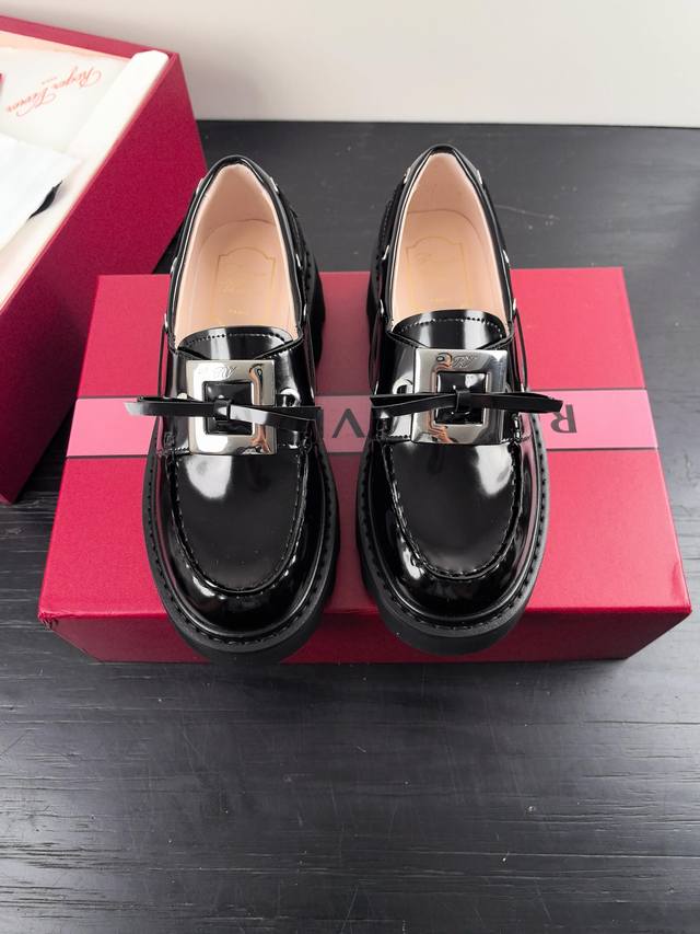 | Rv新款乐福鞋 复古摩登感 设计灵感源自罗杰-维维亚的典藏设计,经典的锯齿鞋底经过重新演绎,焕发出时尚的现代气息。 尽显都市风格 本款皮革船鞋设有防滑厚底 点缀标志性饰扣 轻松为任意造型增添个性细节