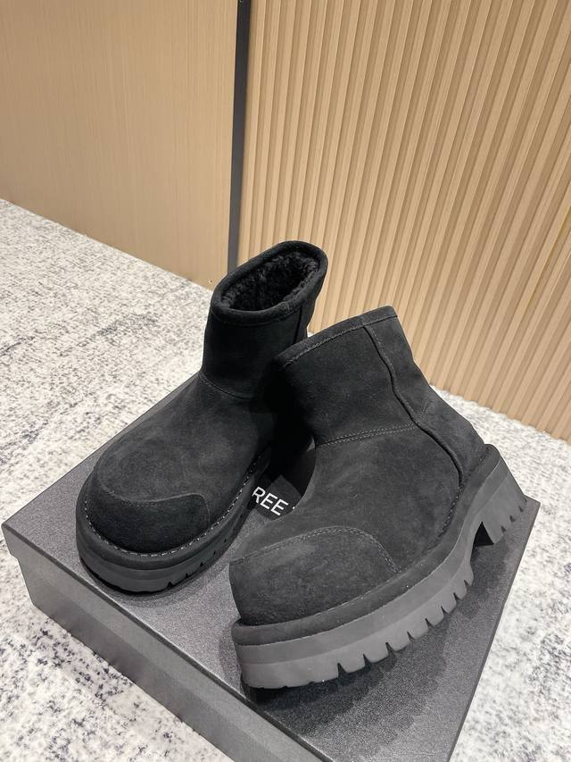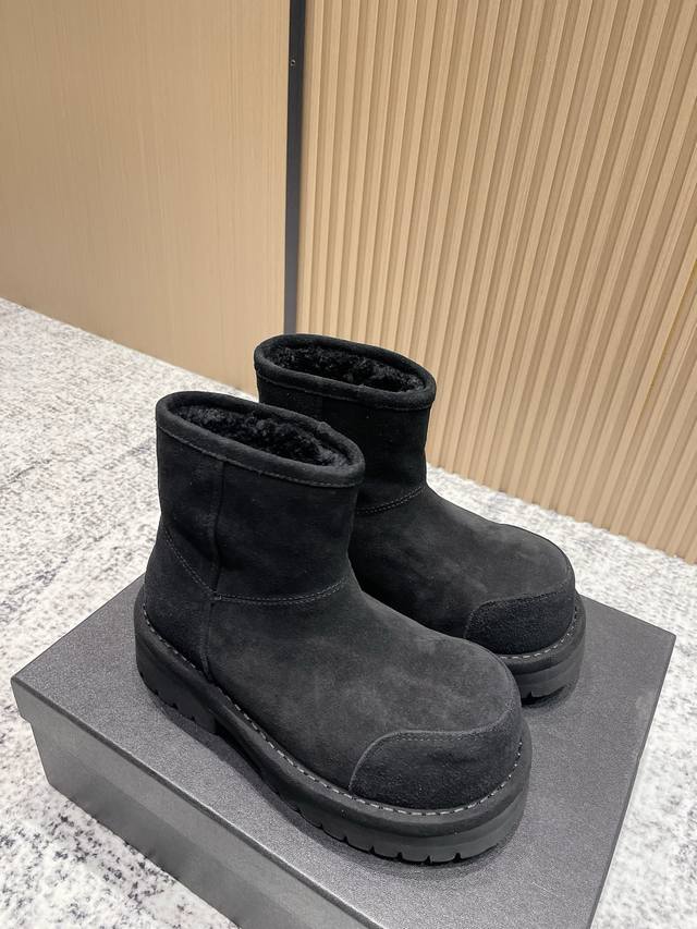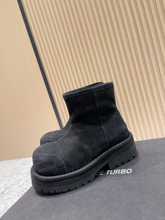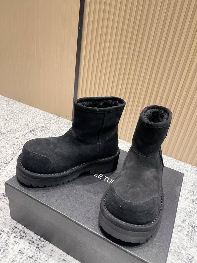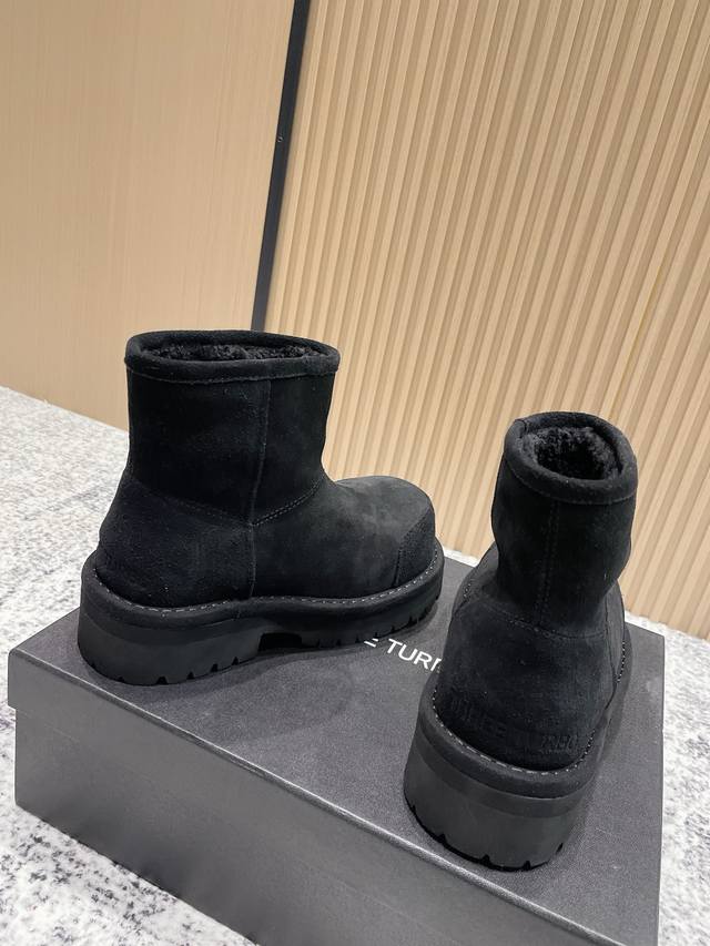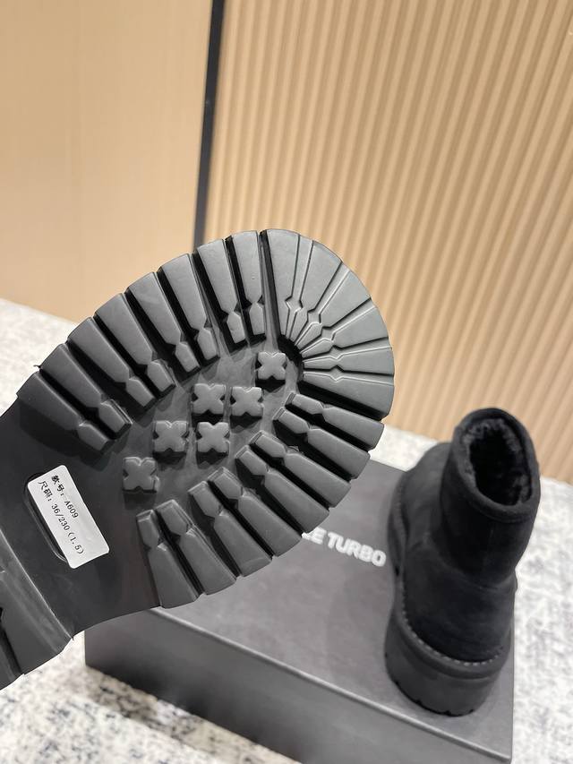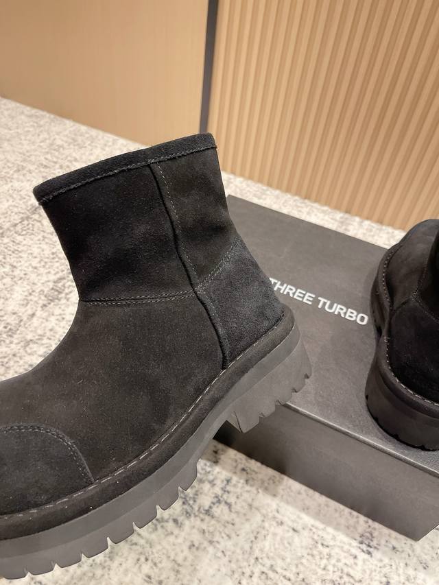 顶级版本: Three Turbo,热门明星单品大头雪地靴 全真真皮真毛雪地靴 面料:优质牛反绒 内里:优质微卷羊毛 大底:防滑耐磨优质原版Tpu防滑耐磨鞋底