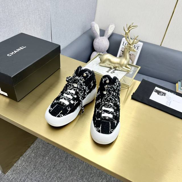 小香C家秋冬限量款运动系带厚底女靴