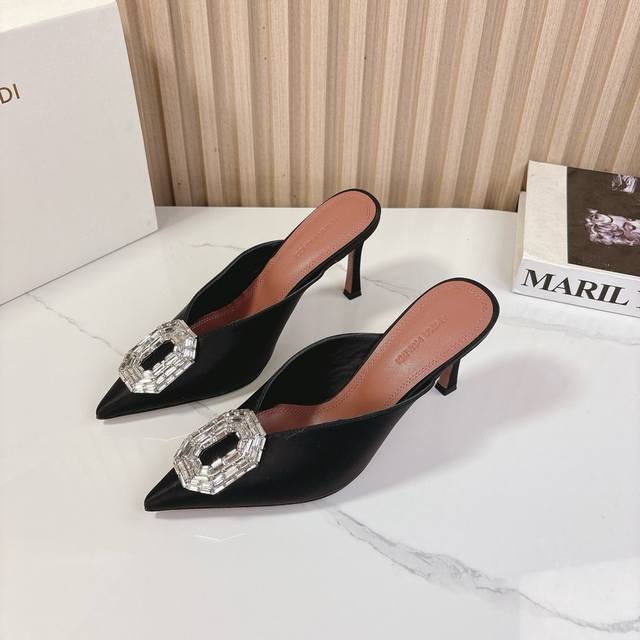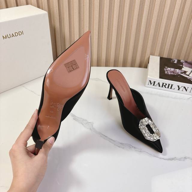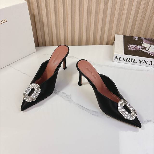 Amina Muaddi 闪钻菱形扣 绝美高跟凉鞋