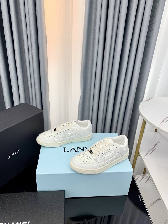 Amiri骨头鞋情侣款,日常休闲必备单品,情侣鞋 适合各种场合!Amiri骨头鞋凭借鞋侧颇具独到风格的骨头图案,充满酷感又百搭!杨幂,陈伟霆等超多明星出席节目或私底下都爱穿,王一博在综艺节目:这就是街舞多次穿着骨头鞋出镜,抢尽风头!帅气又百搭的这一款,快来一起走骨头风吧!面料优选丝绸牛皮,透气网布内里,原版橡胶大底,非硬绑绑的tpu大底,舒适耐磨!女款35--40.男款39--45.