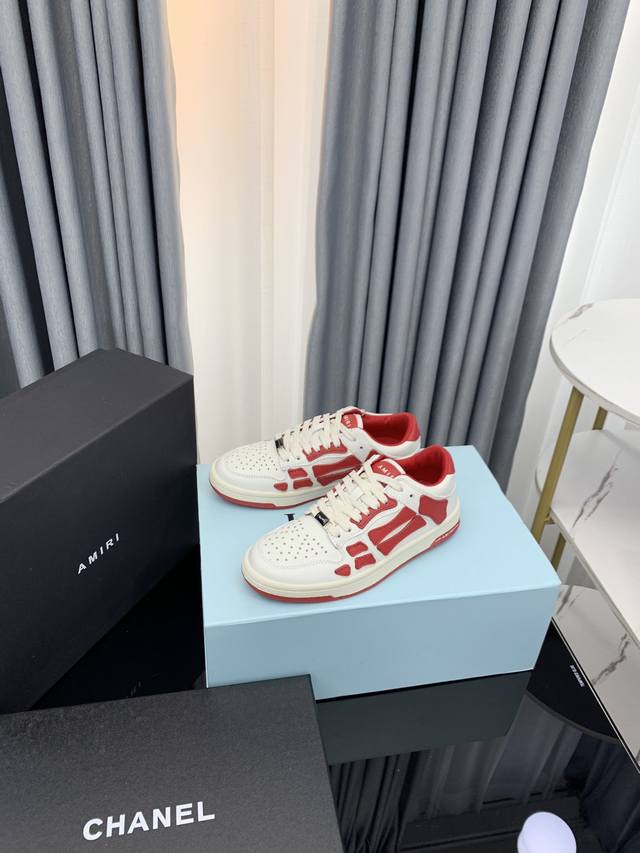 Amiri骨头鞋情侣款,日常休闲必备单品,情侣鞋 适合各种场合!Amiri骨头鞋凭借鞋侧颇具独到风格的骨头图案,充满酷感又百搭!杨幂,陈伟霆等超多明星出席节目或私底下都爱穿,王一博在综艺节目:这就是街舞多次穿着骨头鞋出镜,抢尽风头!帅气又百搭的这一款,快来一起走骨头风吧!面料优选丝绸牛皮,透气网布内里,原版橡胶大底,非硬绑绑的tpu大底,舒适耐磨!女款35--40.男款39--45.