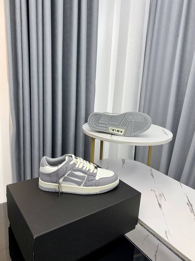 Amiri骨头鞋情侣款,日常休闲必备单品,情侣鞋 适合各种场合!Amiri骨头鞋凭借鞋侧颇具独到风格的骨头图案,充满酷感又百搭!杨幂,陈伟霆等超多明星出席节目或私底下都爱穿,王一博在综艺节目:这就是街舞多次穿着骨头鞋出镜,抢尽风头!帅气又百搭的这一款,快来一起走骨头风吧!面料优选丝绸牛皮,透气网布内里,原版橡胶大底,非硬绑绑的tpu大底,舒适耐磨!女款35--40.男款39--45.