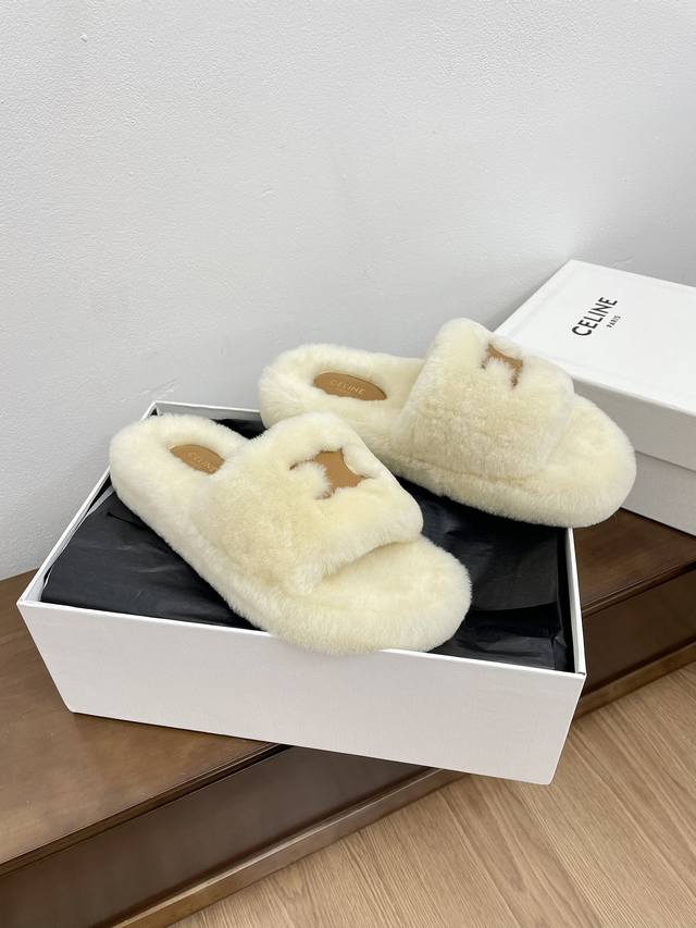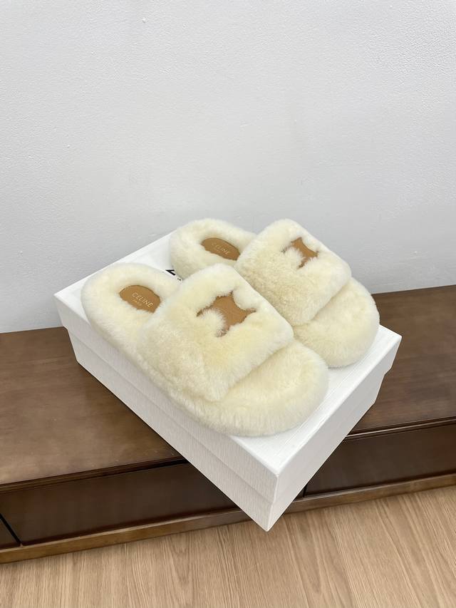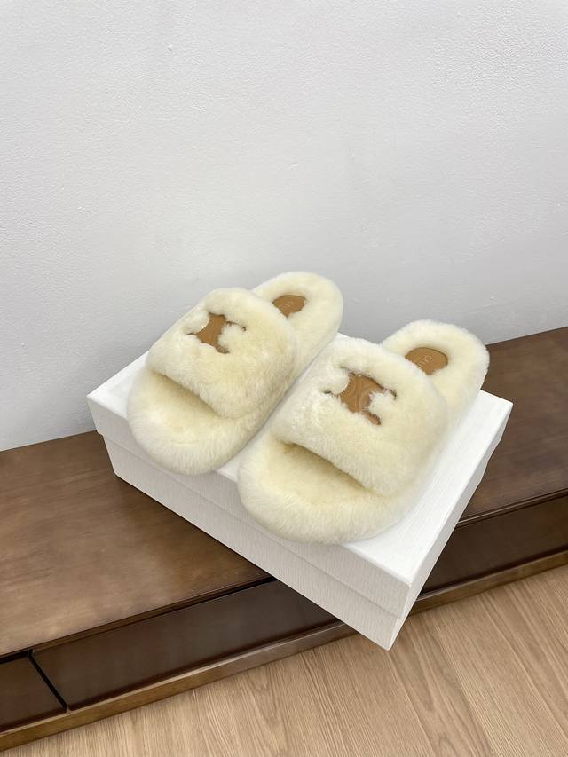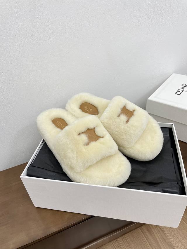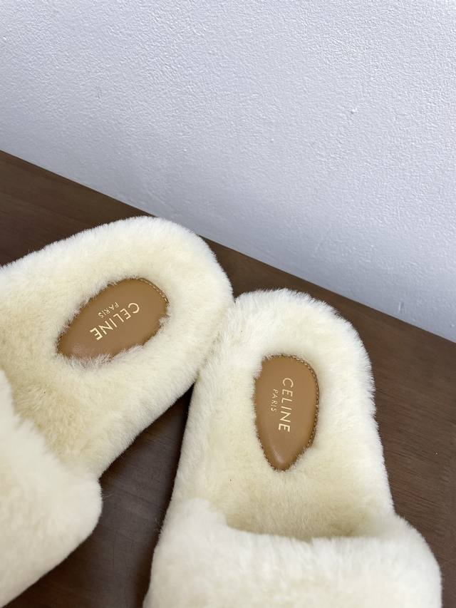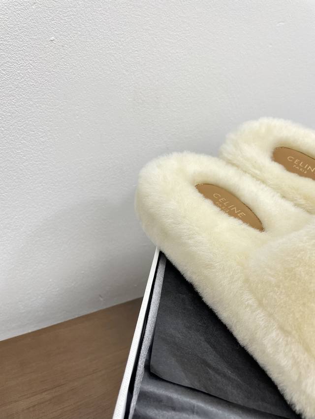 / 顶级版本celine秋冬新款毛毛拖鞋 毛茸茸的羊毛是选用欧洲进口a级羊毛 我们做到与原版一致满鞋全部采用纯羊毛一点人造毛的成分都没有! 鞋面:A+级羊毛 垫脚: