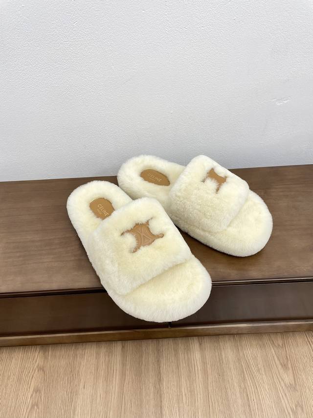 顶级版本celine秋冬新款毛毛拖鞋 毛茸茸的羊毛是选用欧洲进口a级羊毛 我们做到与原版一致满鞋全部采用纯羊毛一点人造毛的成分都没有! 鞋面:A+级羊毛 垫脚: