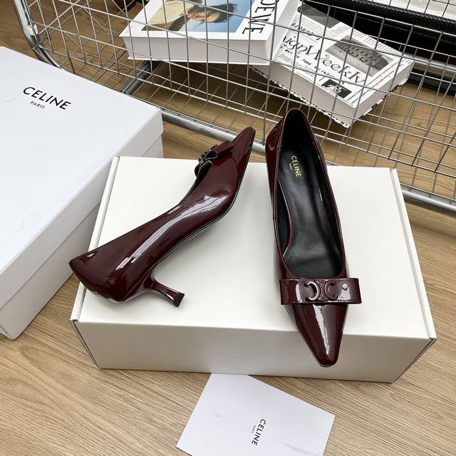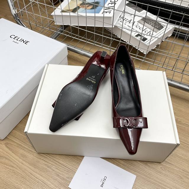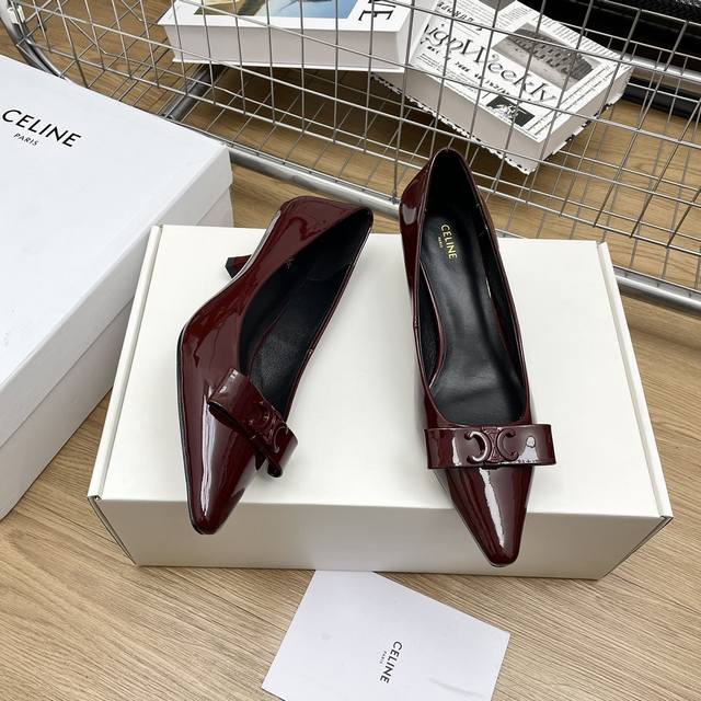 / 顶级版本celine24 新款凯旋门尖头猫跟单鞋 高级优雅上脚显瘦得来,超有气质~5Cm的小猫跟轻松无压力还一点都不挑人 鞋面:开边珠牛皮 内里:羊皮 大底:原