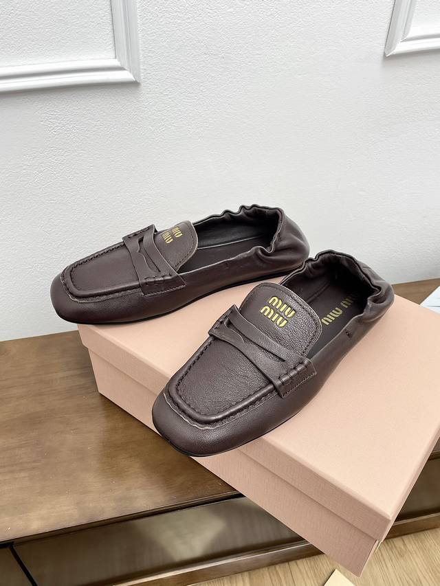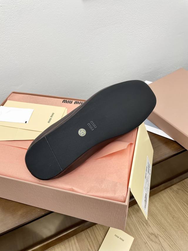 顶级版本miumiu 缪缪25Ss早春走秀新款一脚蹬懒人鞋玛丽珍芭蕾舞鞋 高跟单鞋
