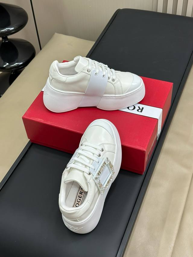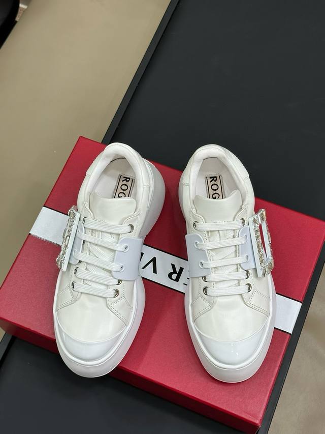 顶级版本roger Vivier Ss24 New Arrival本季viv'Skate 钻扣厚底休闲鞋,增高大约8Cm,稳稳妥妥秒变大长腿。。以牛皮手工制成,
