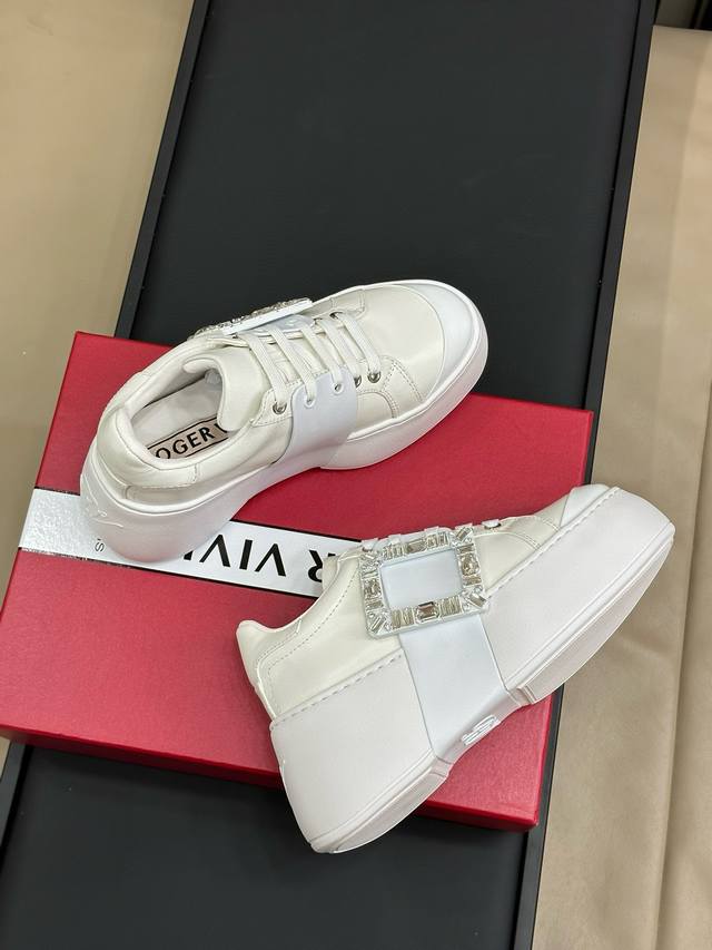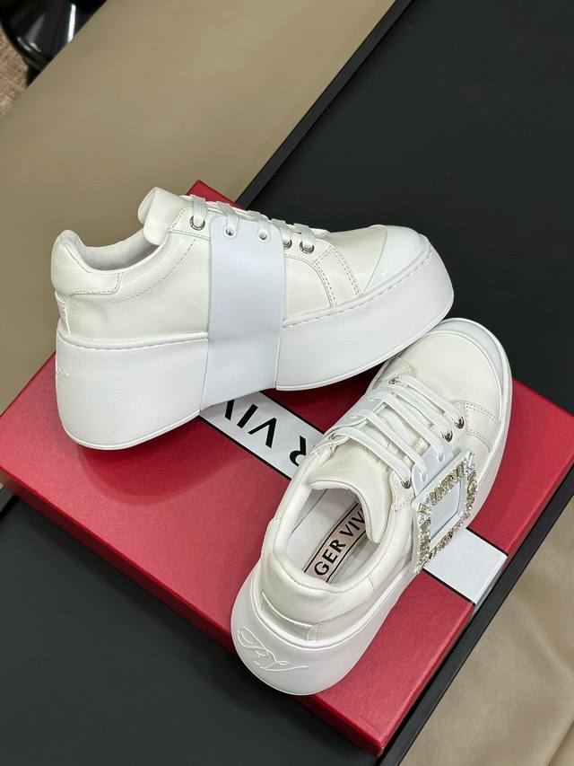 / 顶级版本roger Vivier Ss24 New Arrival本季viv'Skate 钻扣厚底休闲鞋,增高大约8Cm,稳稳妥妥秒变大长腿。。以牛皮手工制成,