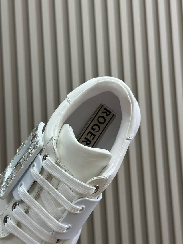 顶级版本roger Vivier Ss24 New Arrival本季viv'Skate 钻扣厚底休闲鞋,增高大约8Cm,稳稳妥妥秒变大长腿。。以牛皮手工制成,配以华丽的闪钻饰扣,轻松提升各种日常着装