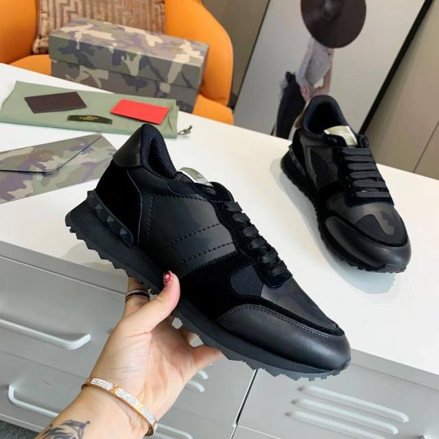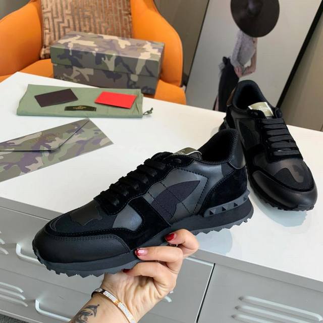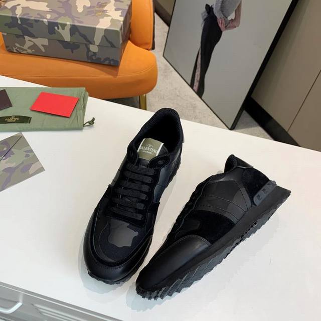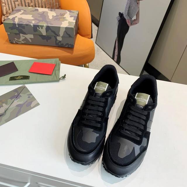 顶级版本valen Tino经典铆钉迷彩系列原版牛皮、内里及鞋垫,鞋垫采用高弹乳胶铺垫,好看耐穿、潮流指数一直都是、绅士款、超级舒适好穿 配原版包装 现货
