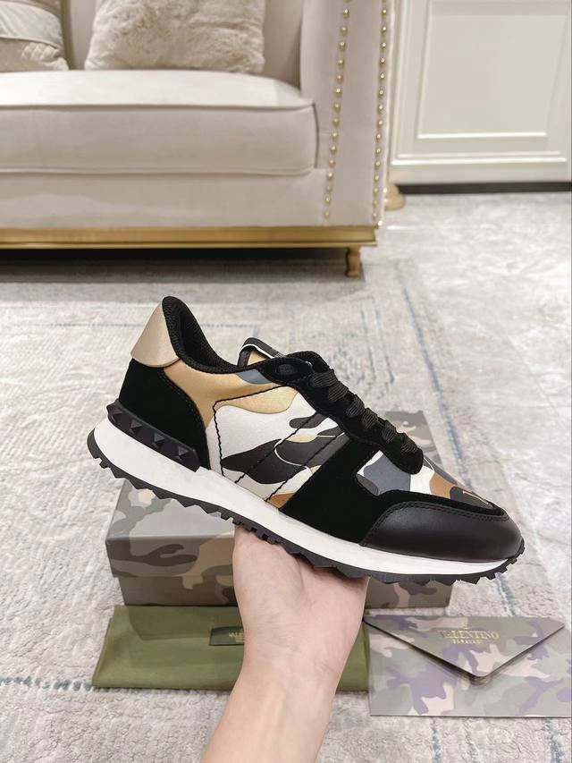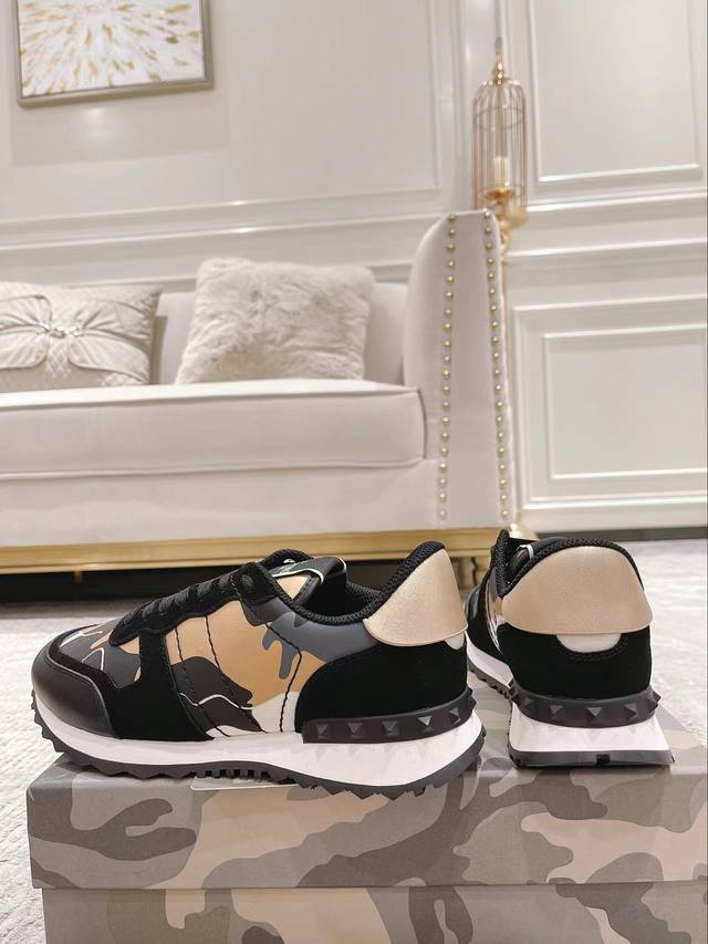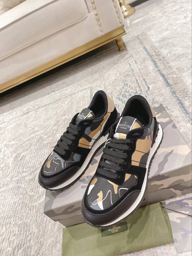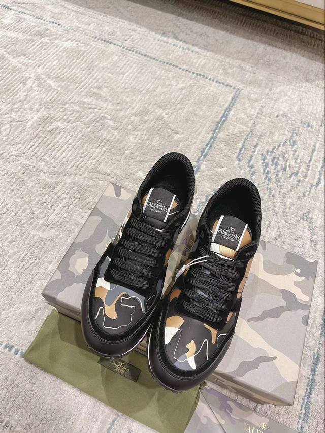 顶级版本valen Tino经典铆钉迷彩系列原版牛皮、内里及鞋垫,鞋垫采用高弹乳胶铺垫,好看耐穿、潮流指数一直都是、绅士款、超级舒适好穿 配原版包装 现货