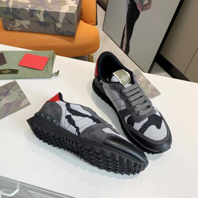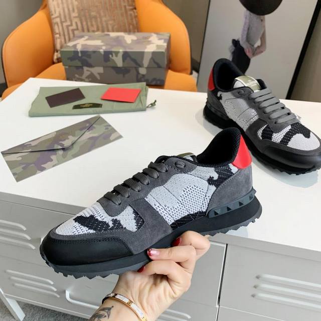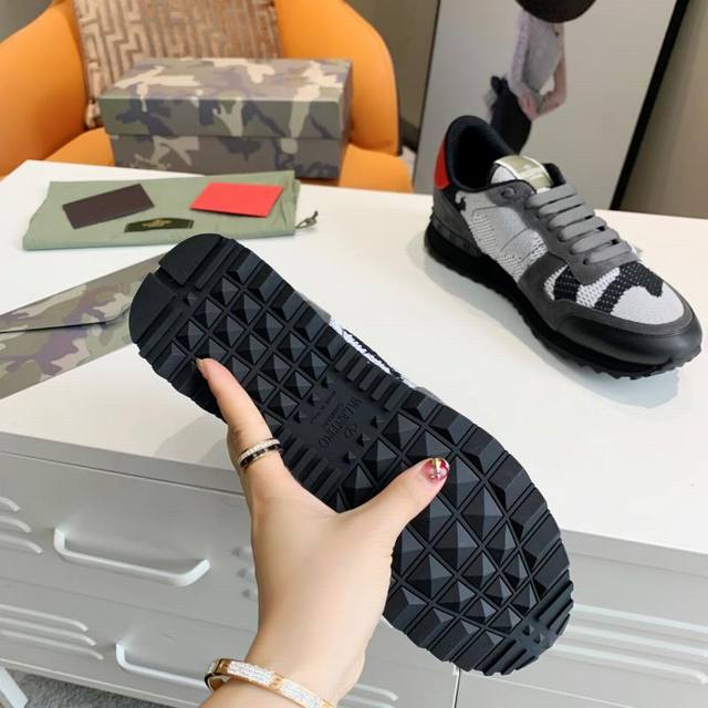 顶级版本valen Tino经典铆钉迷彩系列原版牛皮、内里及鞋垫,鞋垫采用高弹乳胶铺垫,好看耐穿、潮流指数一直都是、绅士款、超级舒适好穿 配原版包装 现货