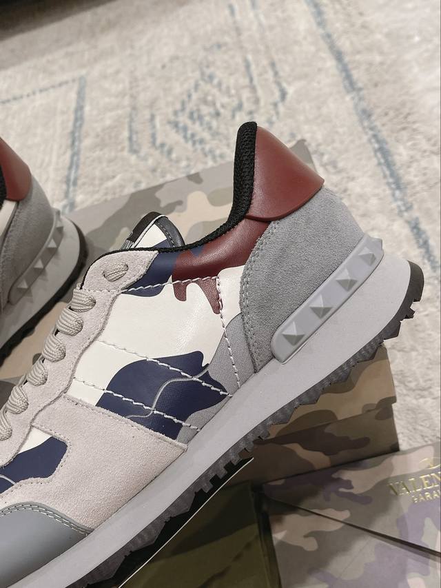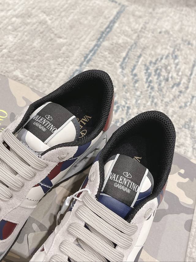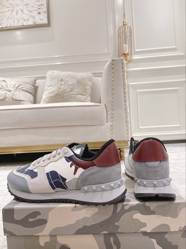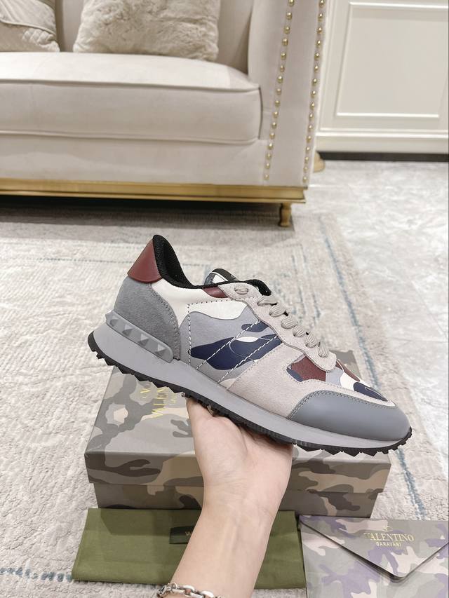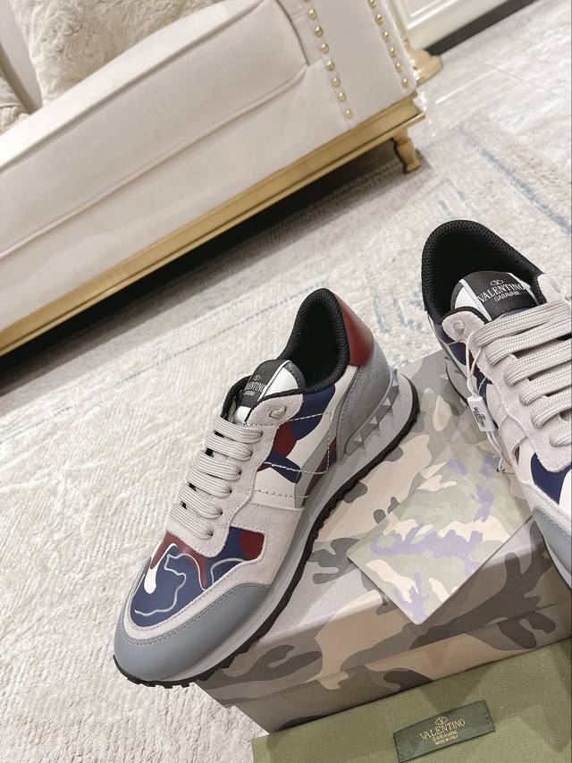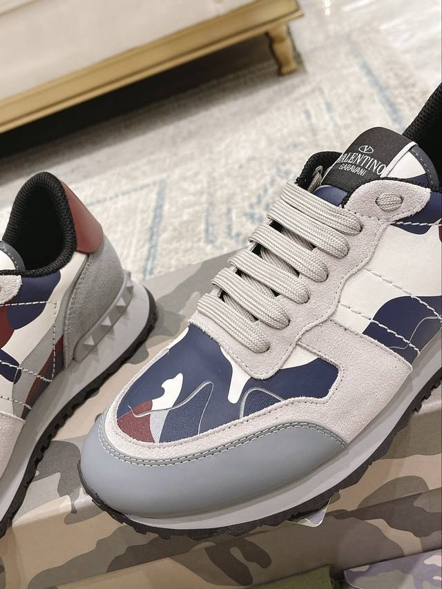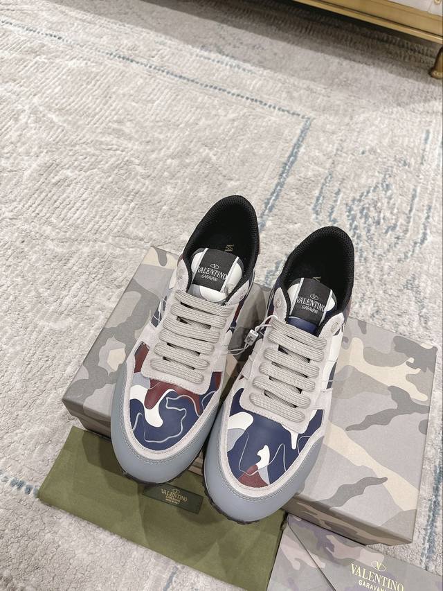 顶级版本valen Tino经典铆钉迷彩系列原版牛皮、内里及鞋垫,鞋垫采用高弹乳胶铺垫,好看耐穿、潮流指数一直都是、绅士款、超级舒适好穿 配原版包装 现货