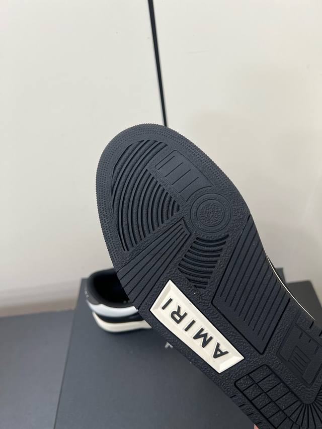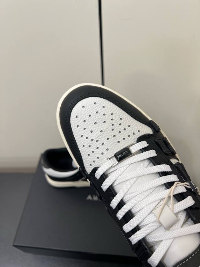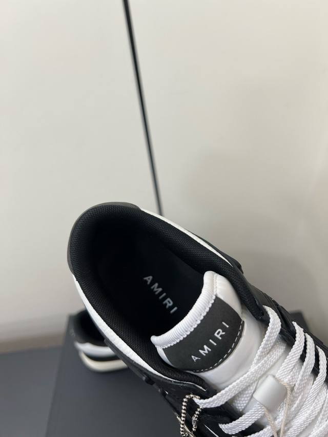 一款兼具奢华和街头风格的运动鞋,其设计和做工非常考究 采用高级皮革制成,触感柔软,耐用性强,呈现高端质感 鞋面装饰了 Amiri经典的骨头贴饰,边缘全油边工艺增添细节感 配备立体的ma四重字母组合外底,既有视觉冲击力,又增加品牌辦识度
