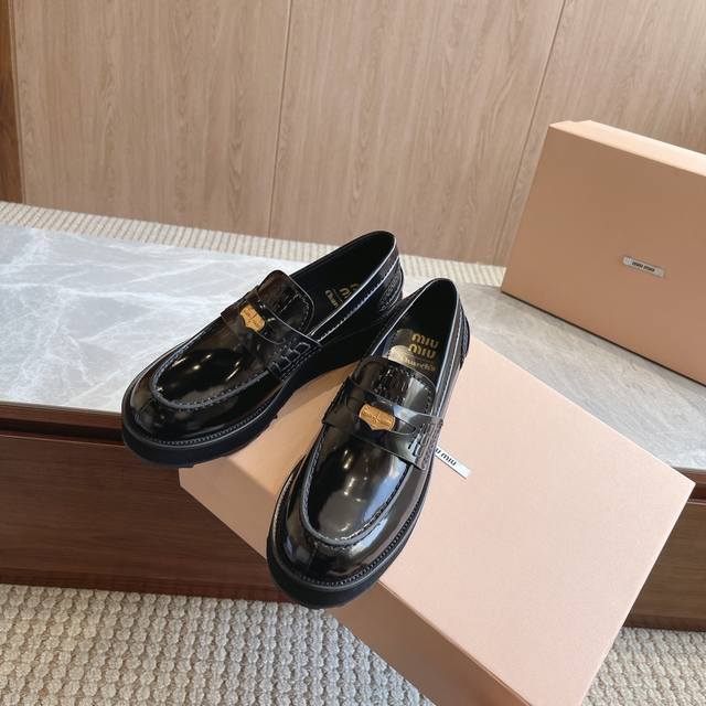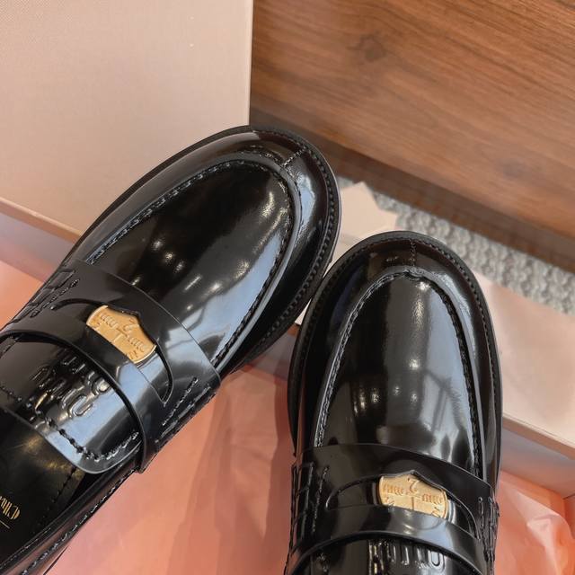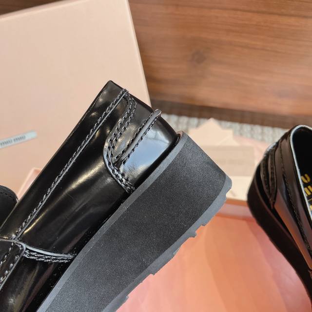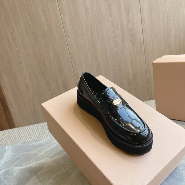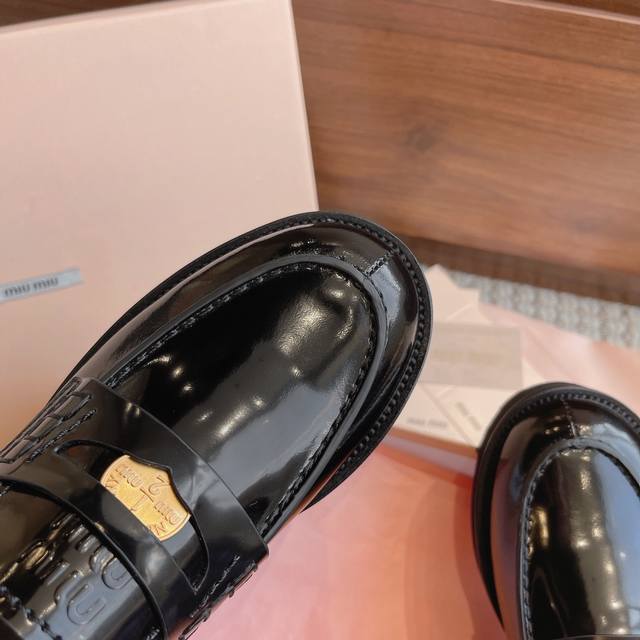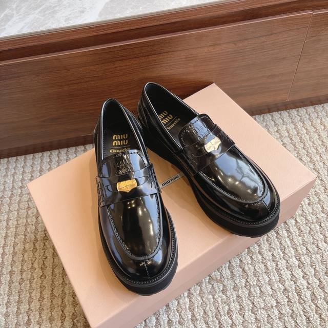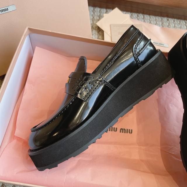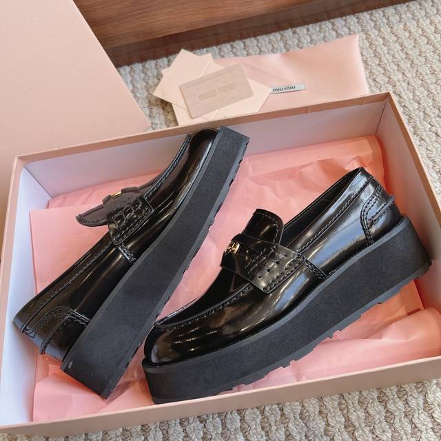 缪缪系带厚底乐福鞋,英伦学院风气质单品...