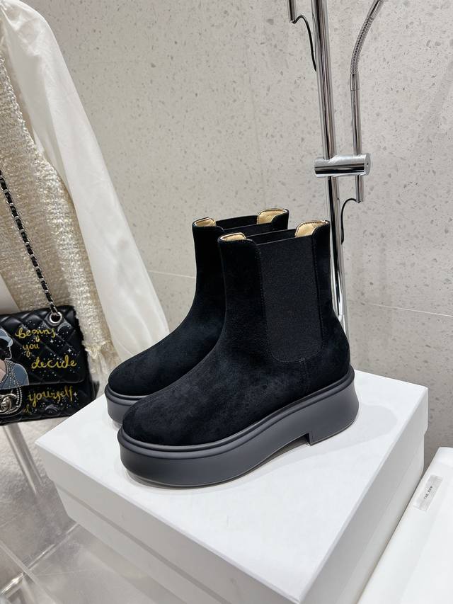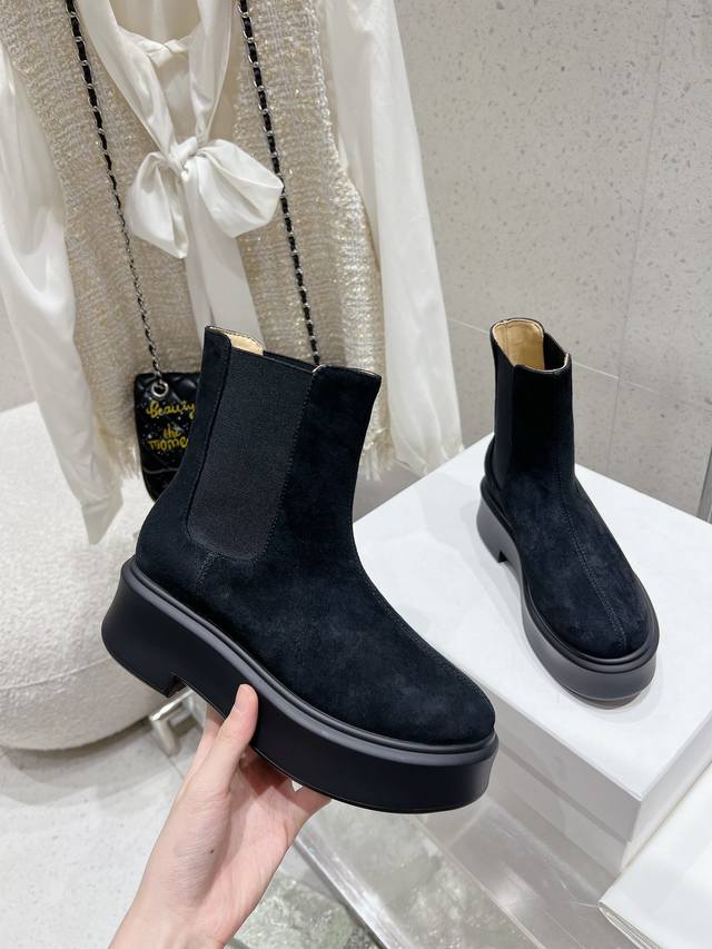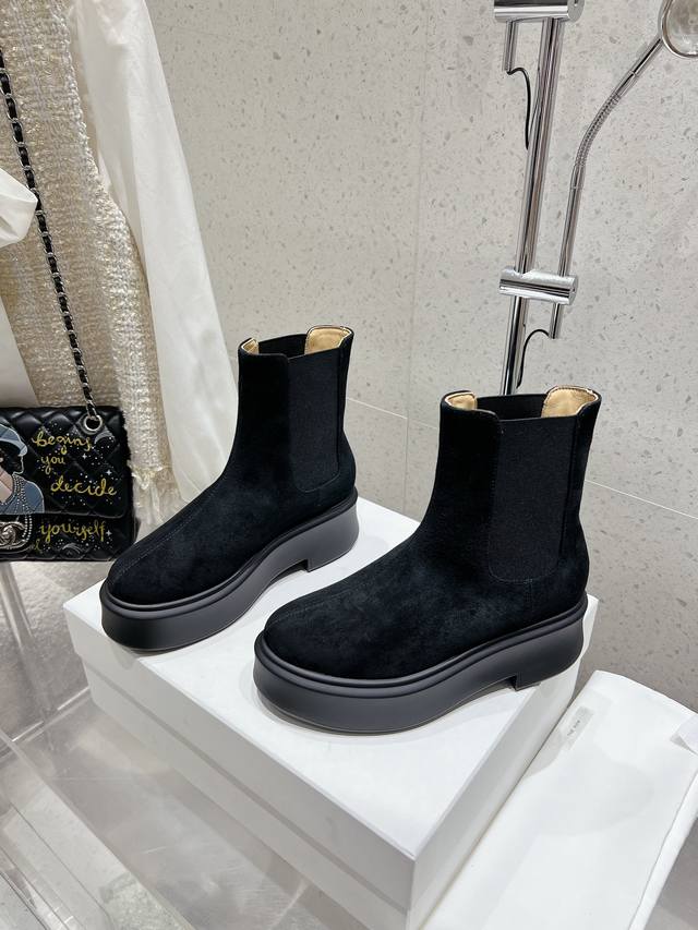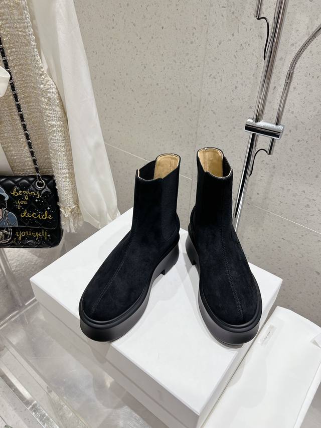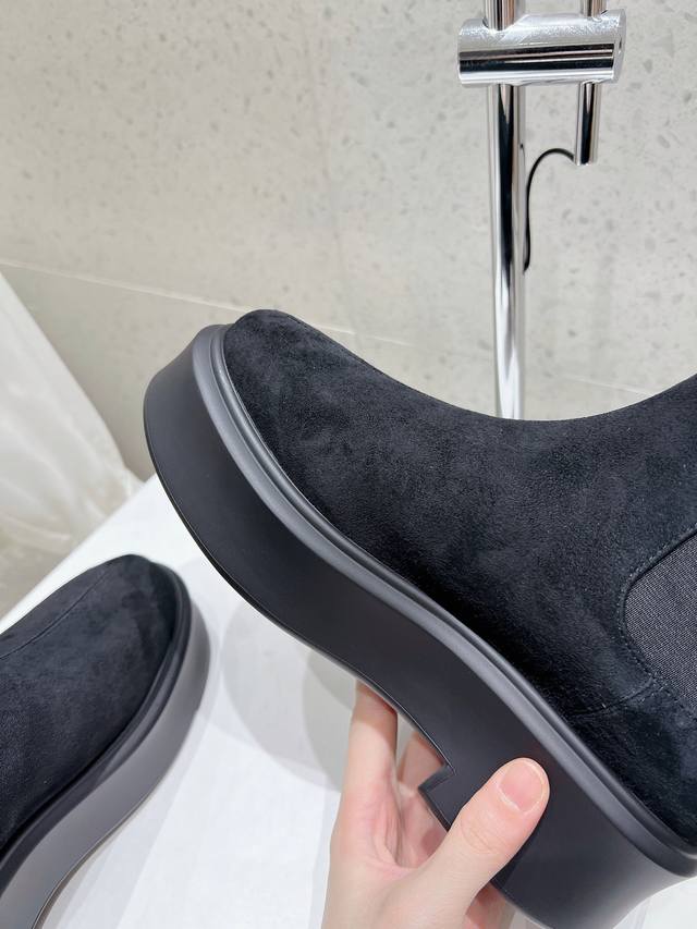 / 顶级版therow秋冬新款弹力经典厚底短靴。超多明星示范原版购入 顶级还原。鞋面原版定制进口小牛皮超柔软混种羊皮内里垫脚。前拉链的设计,简约时髦!上脚超舒服超修