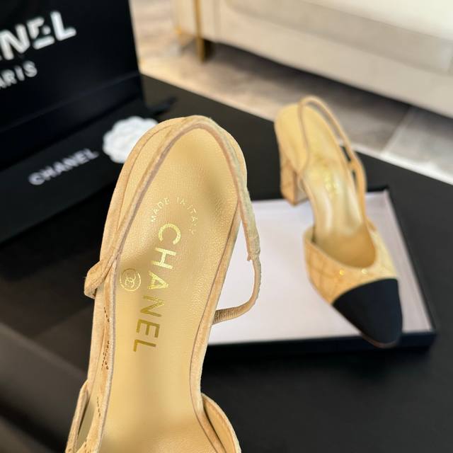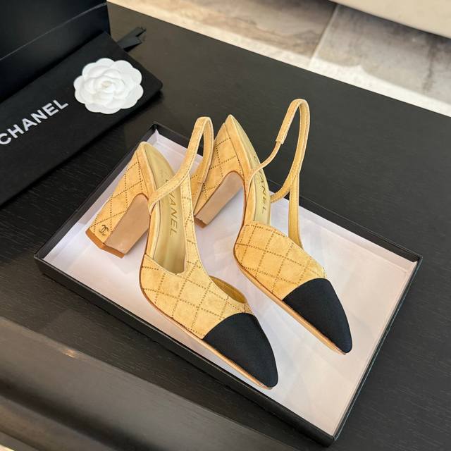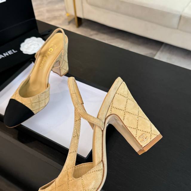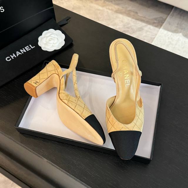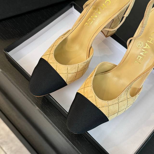 / 香*儿最新系列,9Cm跟高,出厂价 粗跟方头拼色百搭高跟后空女凉鞋 材质:鞋面采用进口全粒面混种羊皮拼接真丝绸缎+内里混种羊皮+意大利进口牛皮底size:码数3