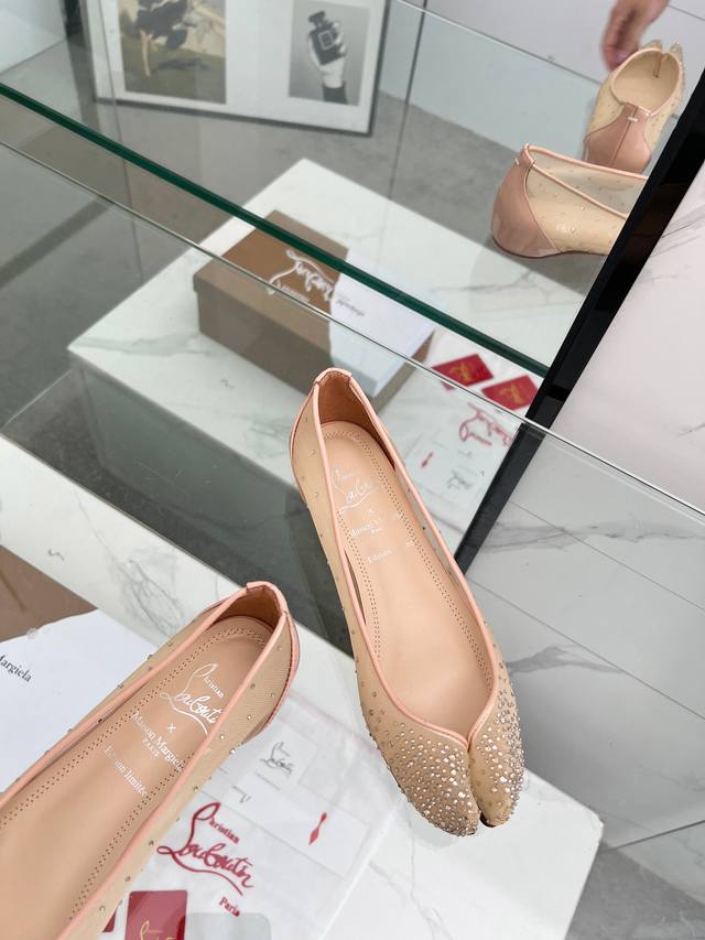马吉拉&Cl联名款红底分趾平底单鞋 Maison Margiela 与 Christian Louboutin 推出首个联名鞋履系列,巧妙融合了两大品牌的设计基