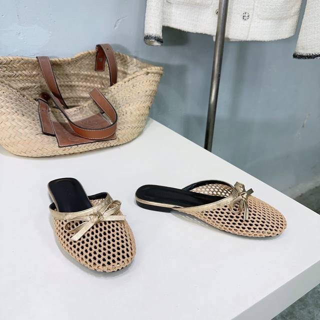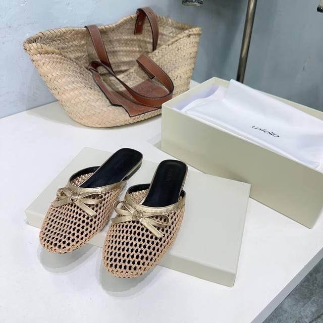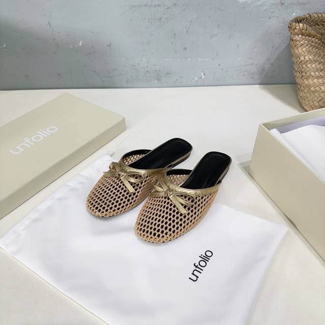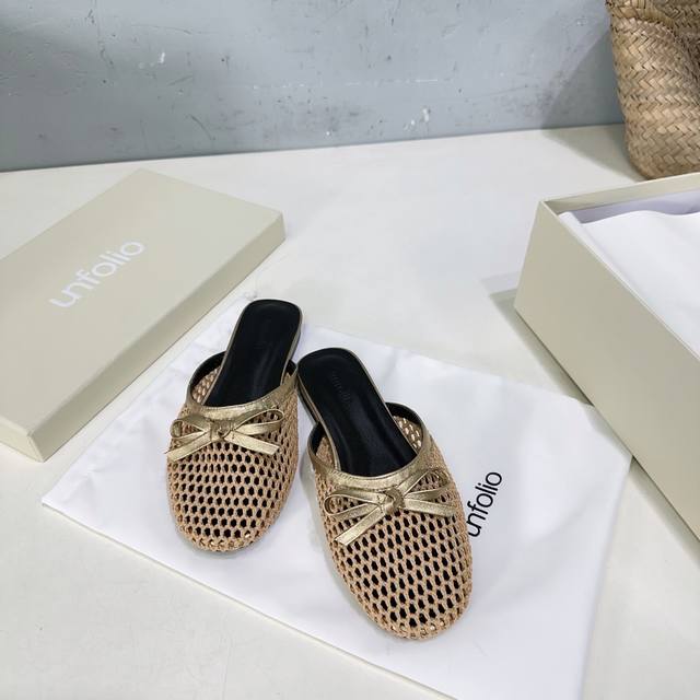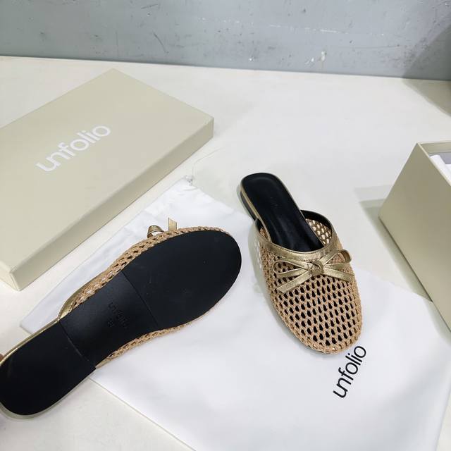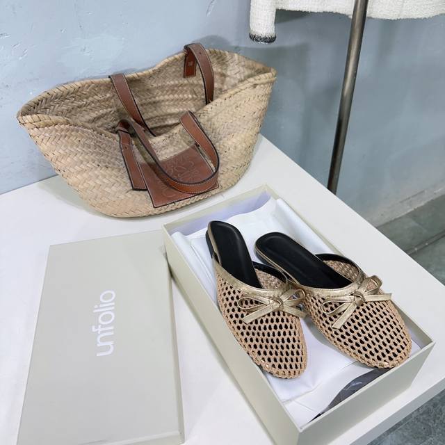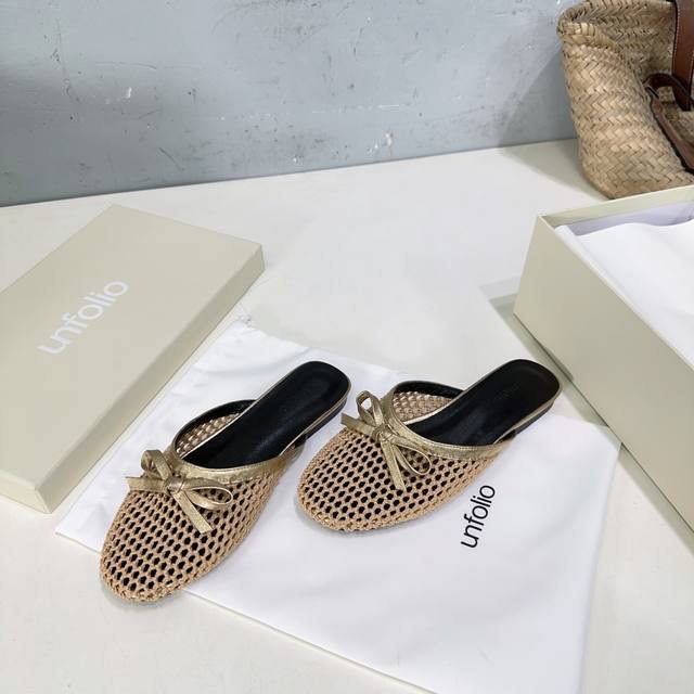 高品质出厂半拖 !小众潮牌!Unfolio 25春夏新款绝美平底编织网鞋玛丽珍单鞋拖鞋!时尚界久违的极简之美!