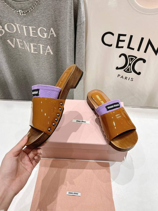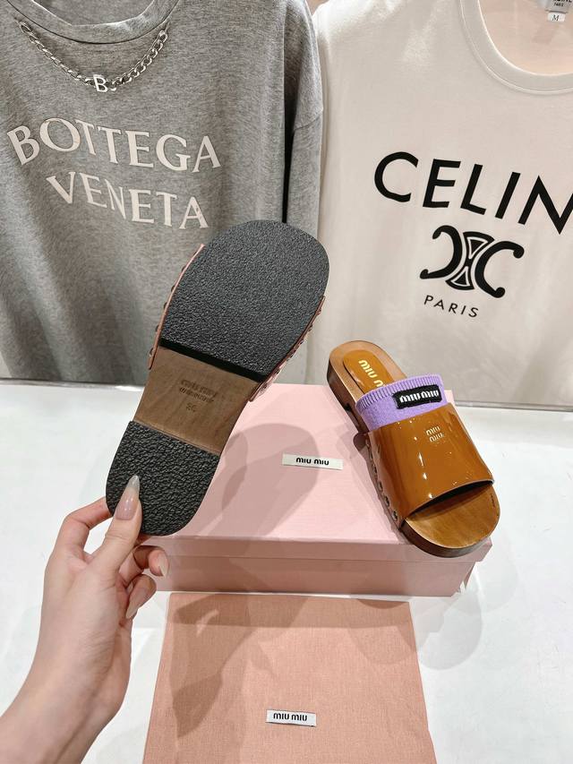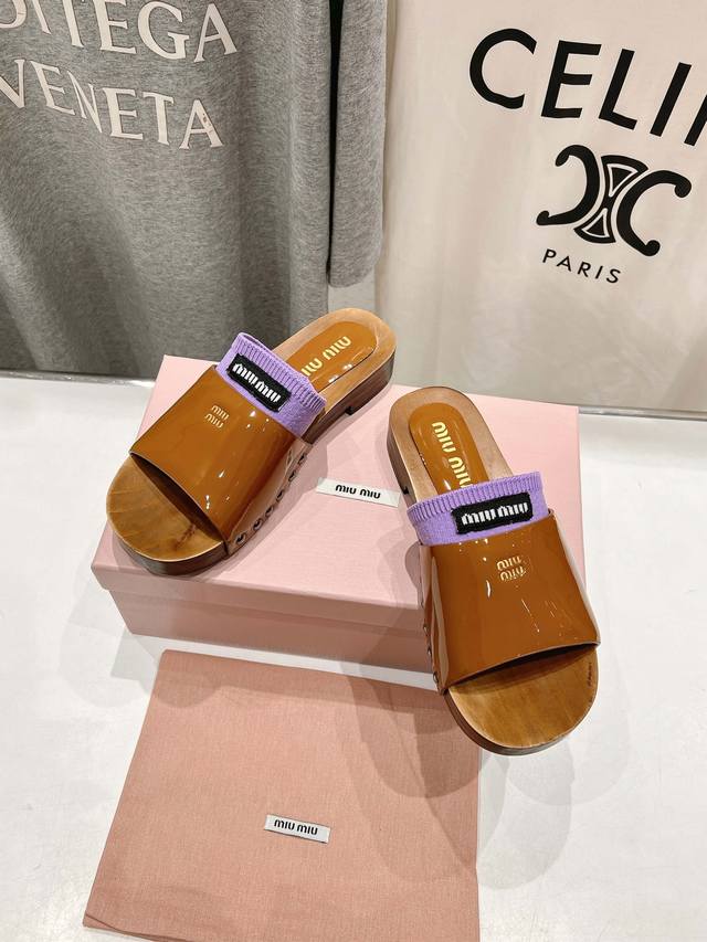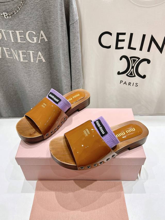 Miumiu*2025Ss缪缪春夏新款平底小牛皮凉鞋拖鞋
