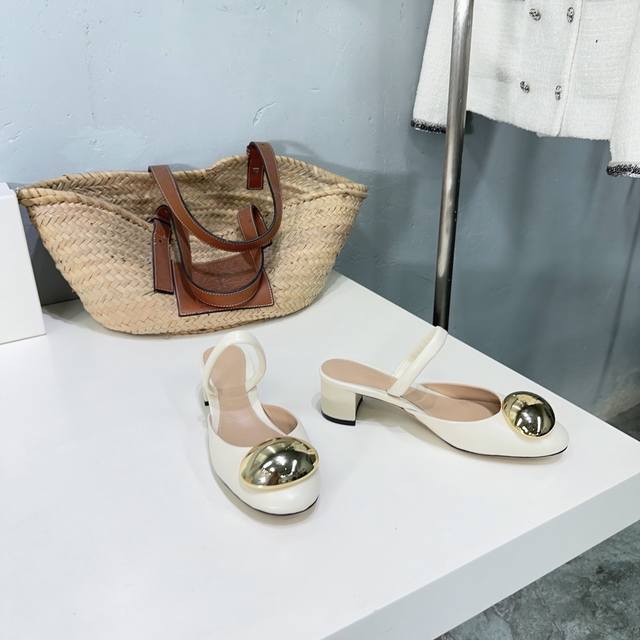 24春夏粗跟圆头粗跟凉鞋!轻松移动,高跟凉鞋!特色金属鸡蛋扣件搭配设计!时尚亮点!