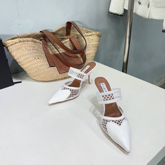 高品质出厂 !小众潮牌独最新爆品小红书火推 Alaia24春夏新款爱心网面尖头细跟后空凉拖系列推出