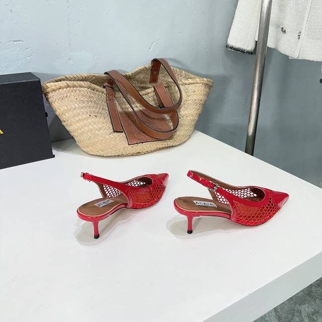 高品质出厂 !小众潮牌独最新爆品小红书火推 Alaia24春夏新款爱心网面尖头细跟后空凉拖系列推出