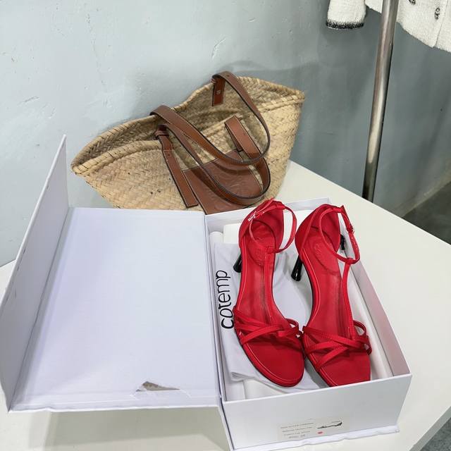 高品质出厂 !小众潮牌顶级品质!Cotem*2024春夏 新款复古高跟带子麻花罗马凉鞋!