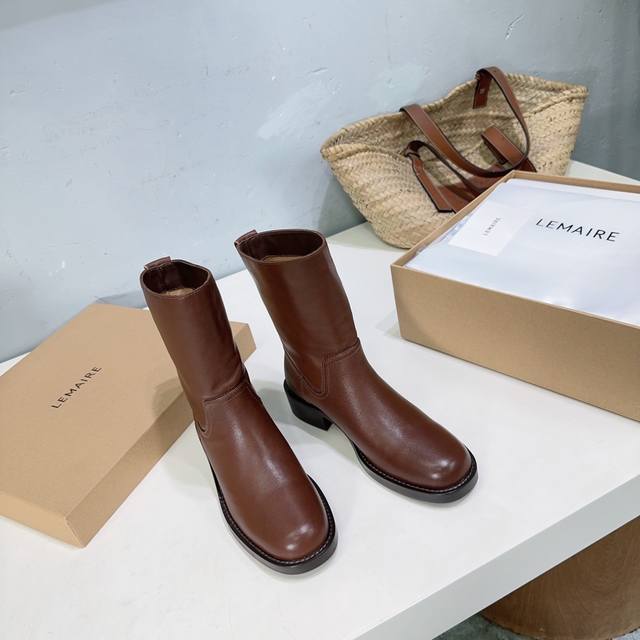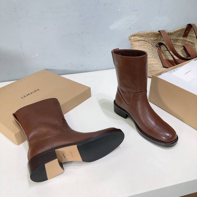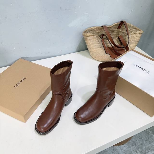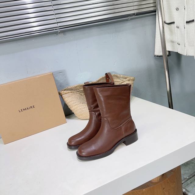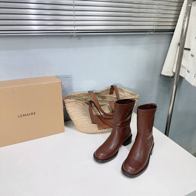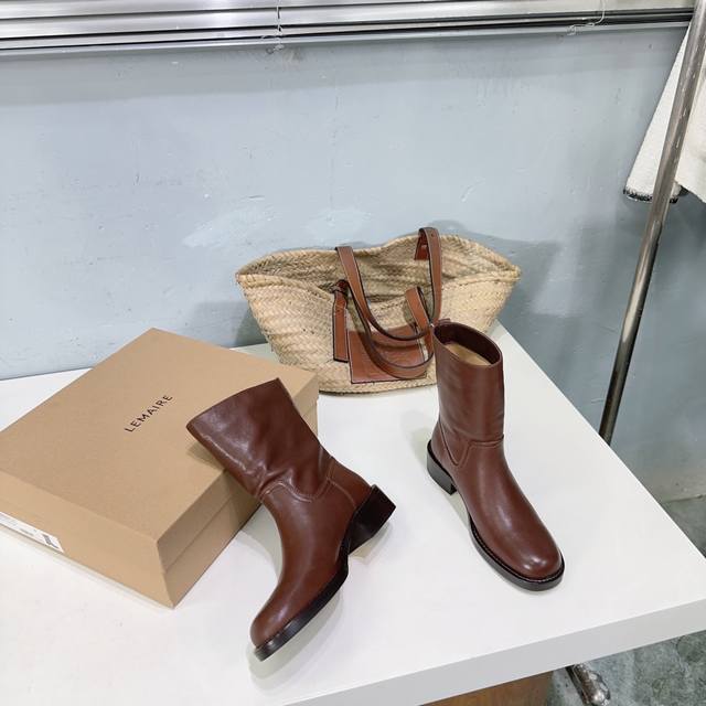 高品质出厂 !小众潮牌顶级渠道!Lemaire24Ss秋冬方头一脚蹬平跟短靴!