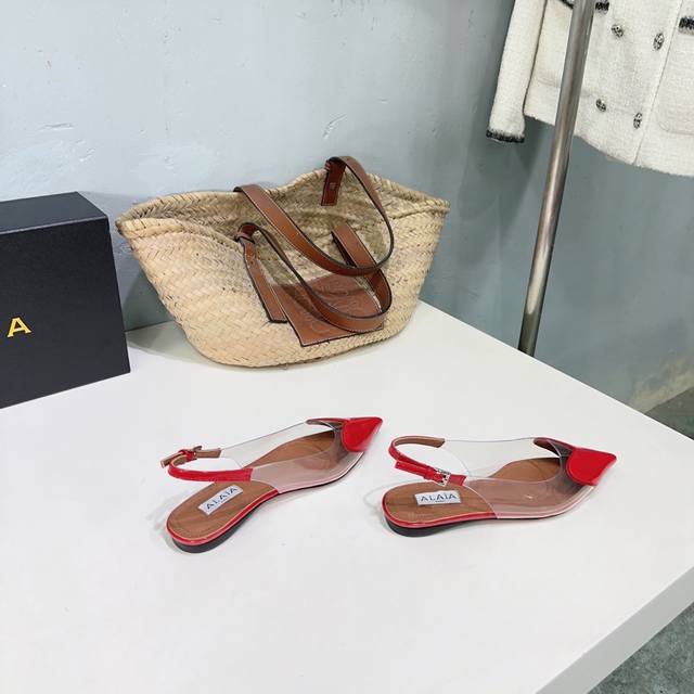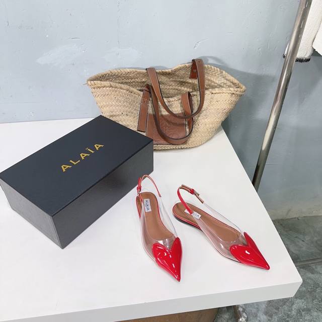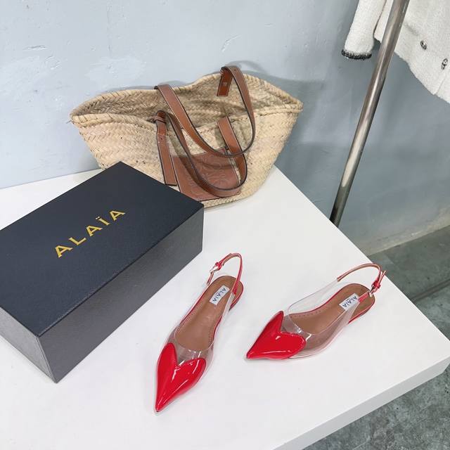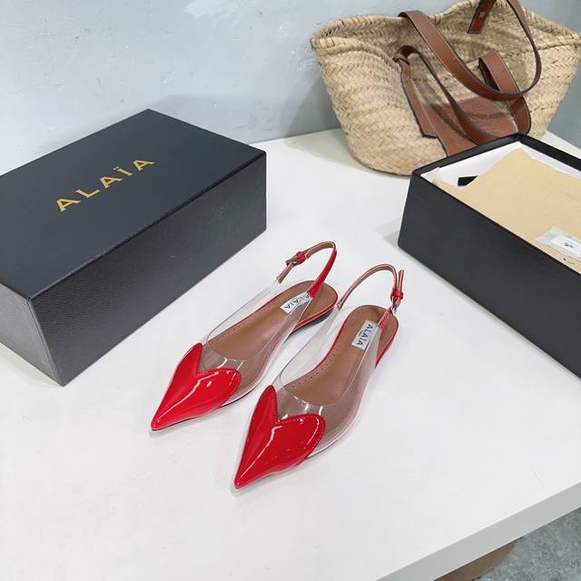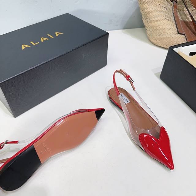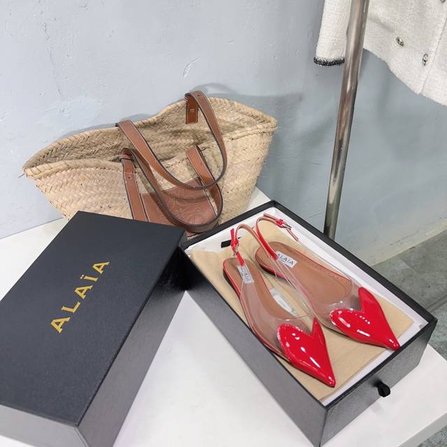 高品质出厂 !小众潮牌alaia24春夏秀场款h Ighlove爱心漆皮胶片简易尖头平底凉鞋!