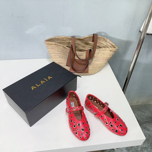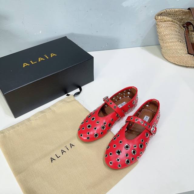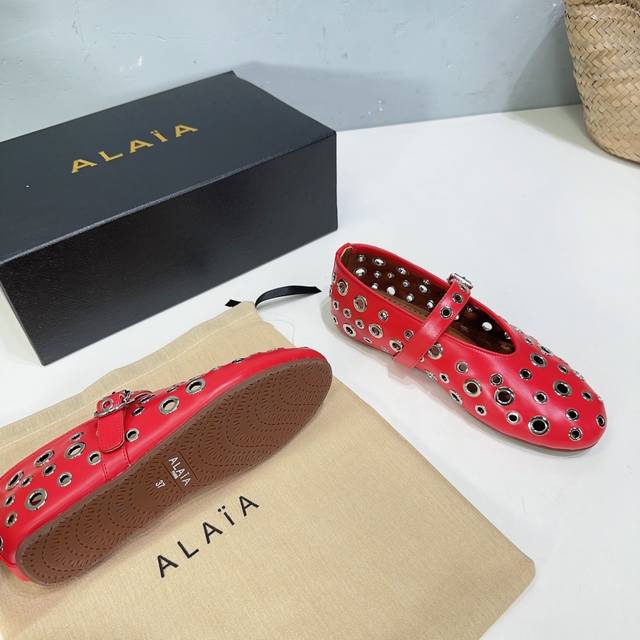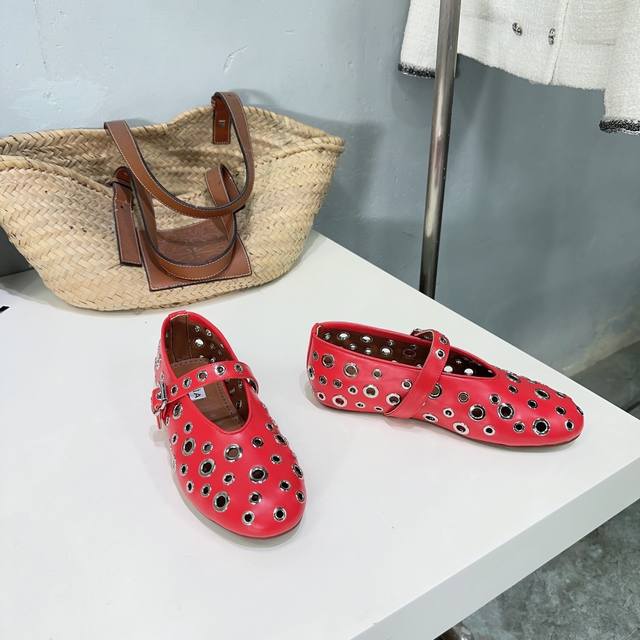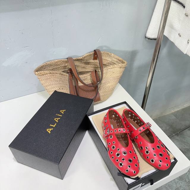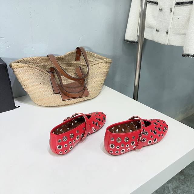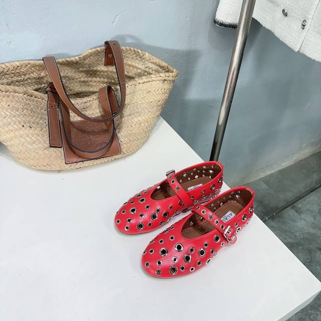 高品质出厂 !小众潮牌alaia24春夏镂空五金扣圆头平底奶奶鞋乐福鞋单鞋!最新春夏时装秀新款系列平底芭蕾舞鞋!法国高端一线高定品牌!时尚界最后的手艺人