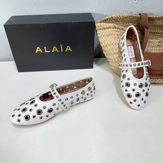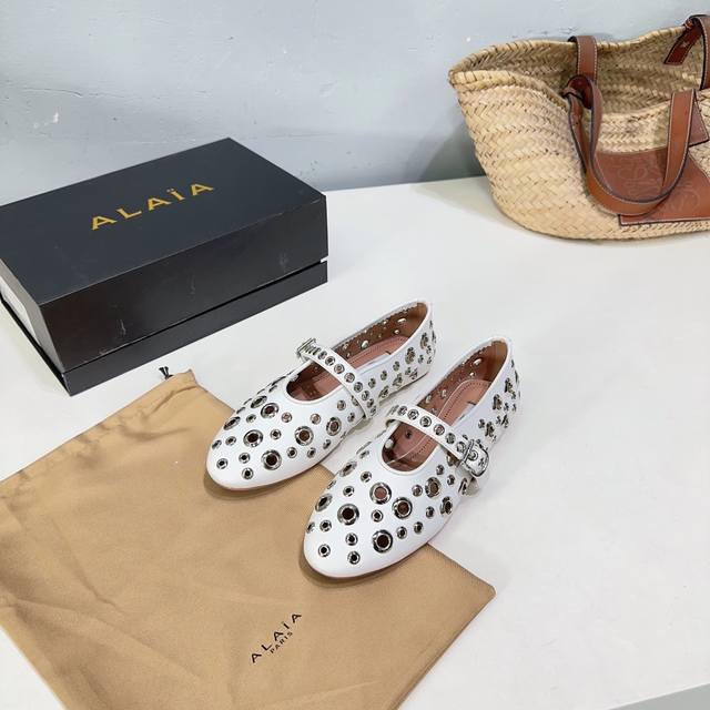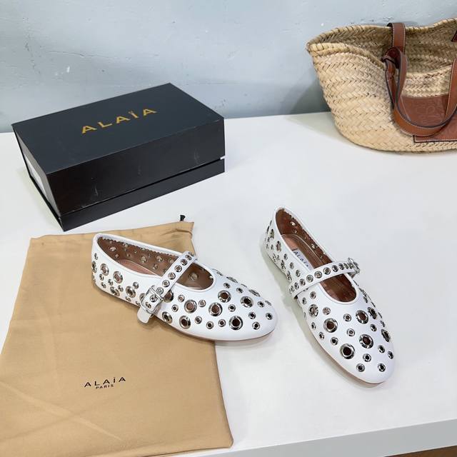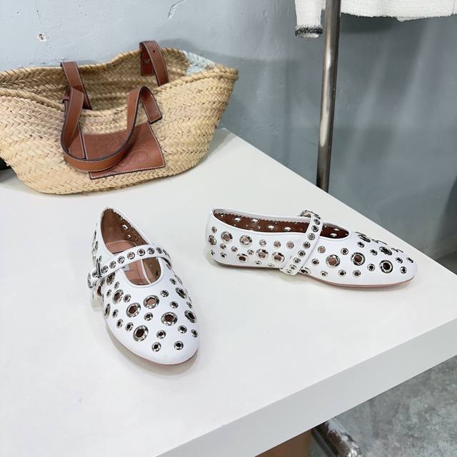高品质出厂 !小众潮牌alaia24春夏镂空五金扣圆头平底奶奶鞋乐福鞋单鞋!最新春夏时装秀新款系列平底芭蕾舞鞋!法国高端一线高定品牌!时尚界最后的手艺人