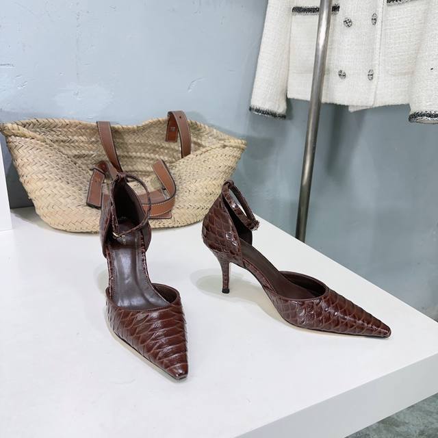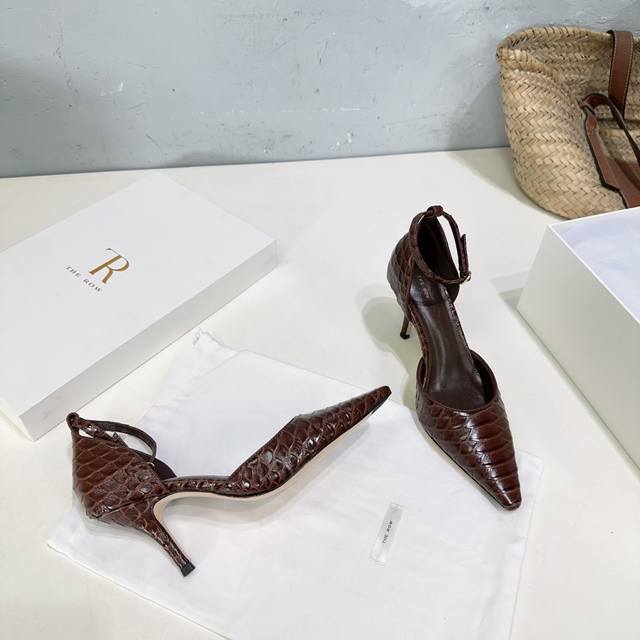 高品质出厂 !小众潮牌the Row25春夏法式复古简易尖头高跟中空凉鞋单鞋!