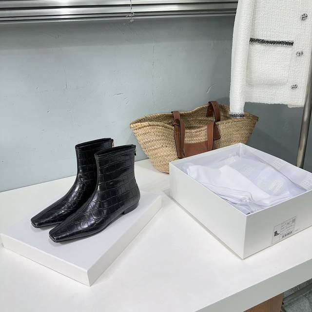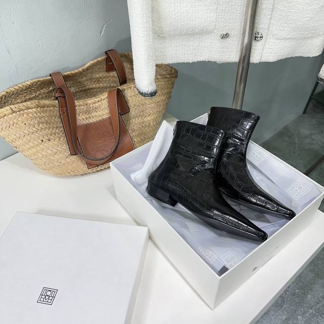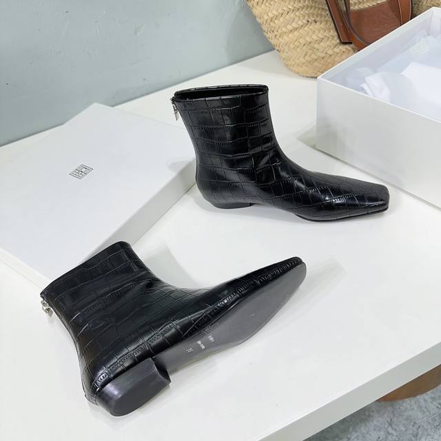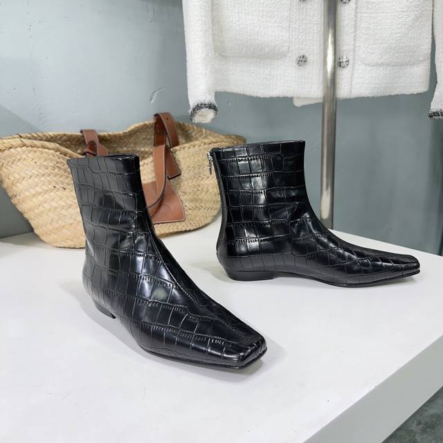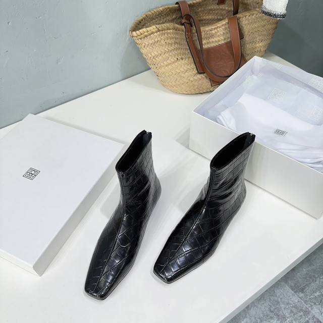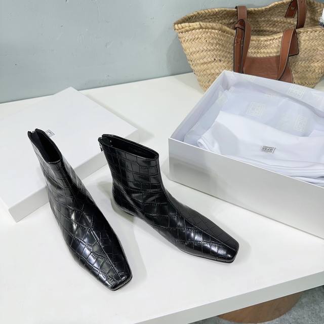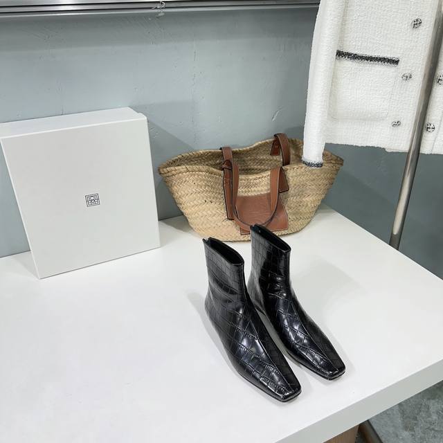 高品质出厂 !小众潮牌toteme 24Ss秋冬新款石头纹矮跟切尔西小方头短靴! Toteme在打造高级感这点从来就没输过一双简约干练、低调时髦的靴子没有鲜艳的色彩和繁杂的设计,仅凭小跟和利落时髦的方头设计就能气场全开,高级感十足