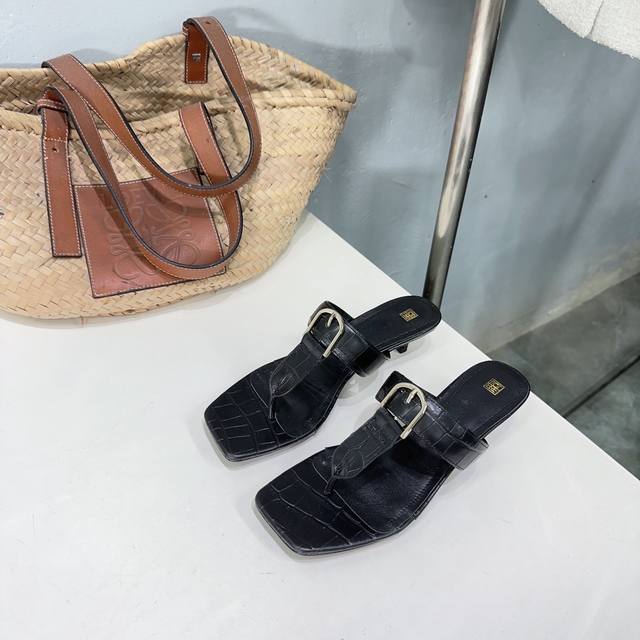 高品质出厂 !小众潮牌toteme24春夏小猫跟 法式复古人风字拖穆勒鞋!全新夏天配色!
