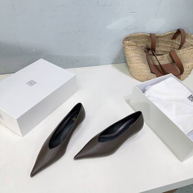 高品质出厂 !小众潮牌toteme25春夏新款复古坡跟尖头简易单鞋!春夏季节搭配裙裤都非常好看!简单利落的设计很适合日常穿着,极简设计,慵懒随性,尖头很有气场,适合日常穿搭,高级又实用的款!