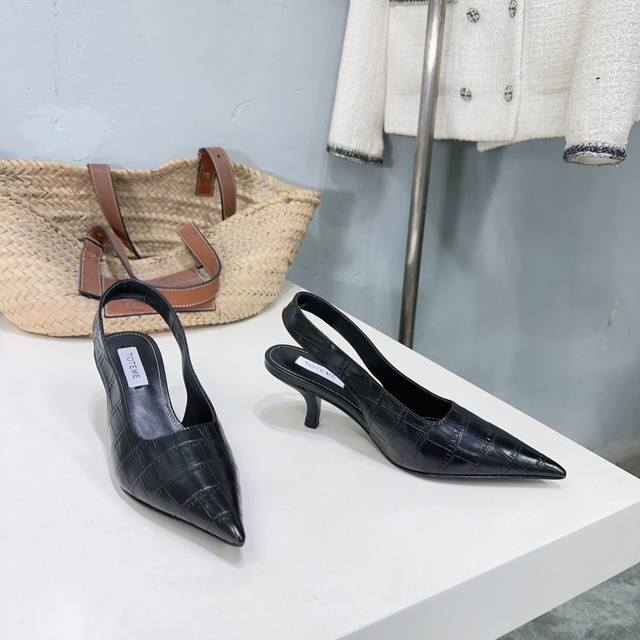 高品质出厂 !小众潮牌toteme25春夏 瑞士小众复古猫跟尖头后空凉鞋!这种复古休闲的风格真的格外受欢迎,鞋型是今年流行的很火很复古的尖头头设计,相比圆头方头更能修饰腿型显腿细长,里外全真皮上脚很舒适完全不用磨合的款