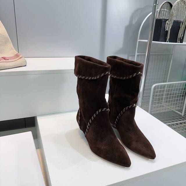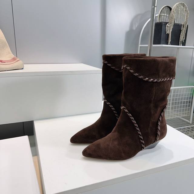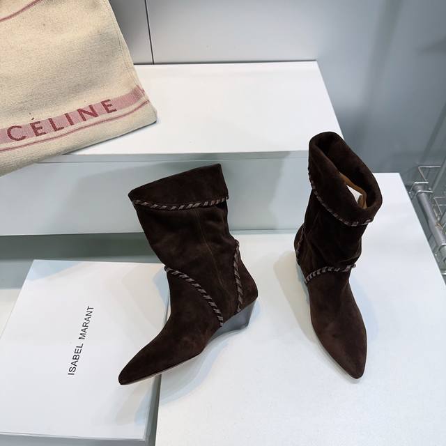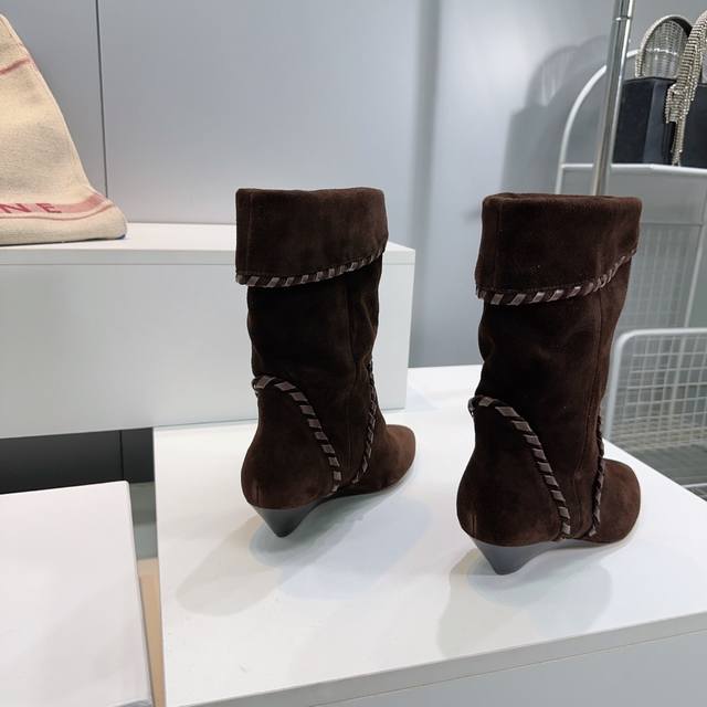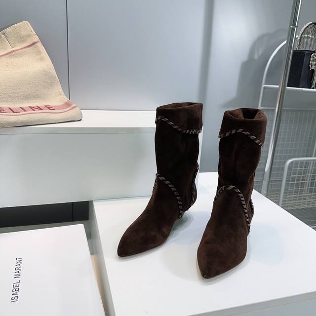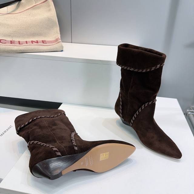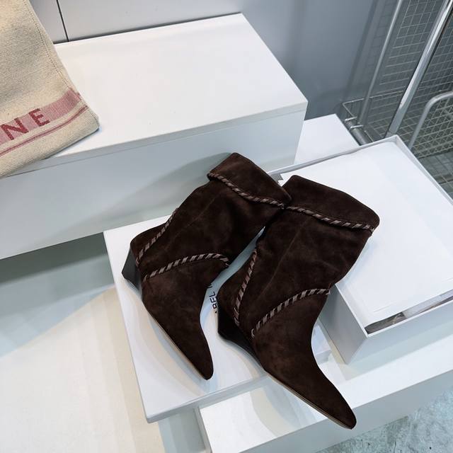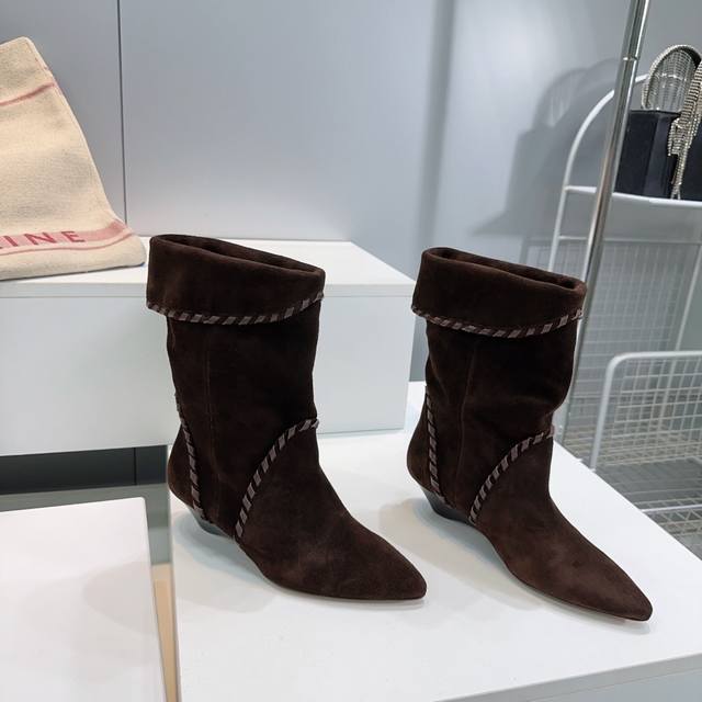 高品质出厂 !顶级品质伊莎贝尔Isabel Marant25Ss秋冬走秀款欧美风堆堆靴复古坡跟尖头编织一脚蹬短靴中靴! 一年四季都可以穿的靴子来了,一双封神的复