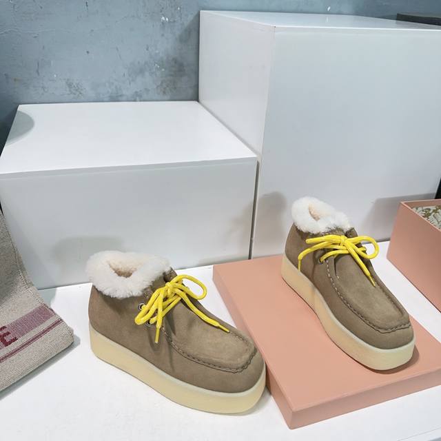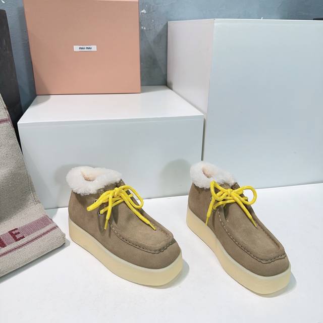 高品质出厂 !顶级品质 Miumiu 缪缪厚底 Ss秋冬新款英伦风厚底保暖羊羔毛雪地靴棉鞋 怎么穿都好看今夏时髦精最爱 上脚超级舒服,上脚百搭又保暖!秋冬必备神