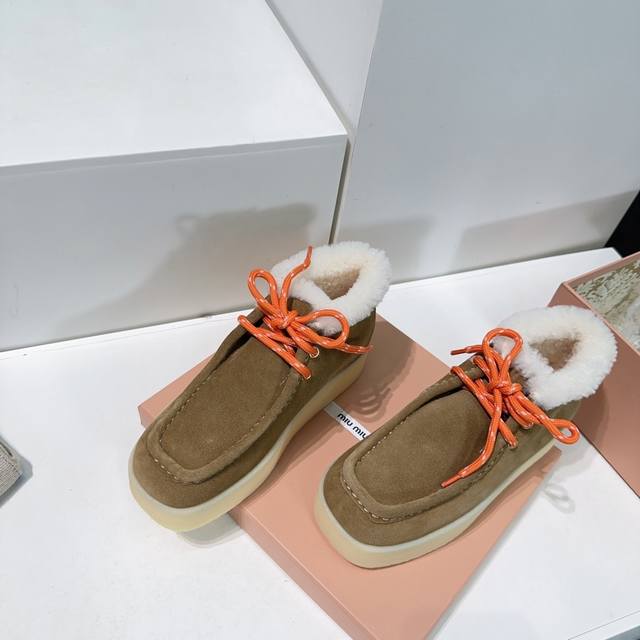 高品质出厂 !顶级品质 Miumiu 缪缪厚底 Ss秋冬新款英伦风厚底保暖羊羔毛雪地靴棉鞋 怎么穿都好看今夏时髦精最爱 上脚超级舒服,上脚百搭又保暖!秋冬必备神器!