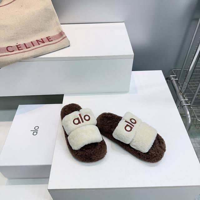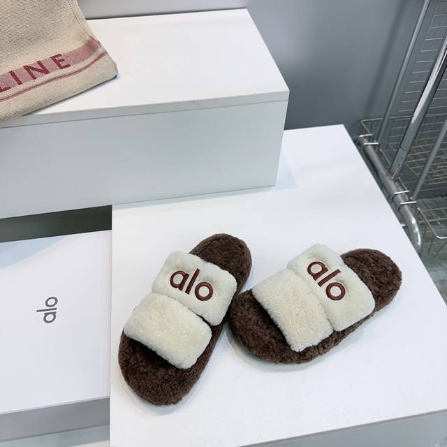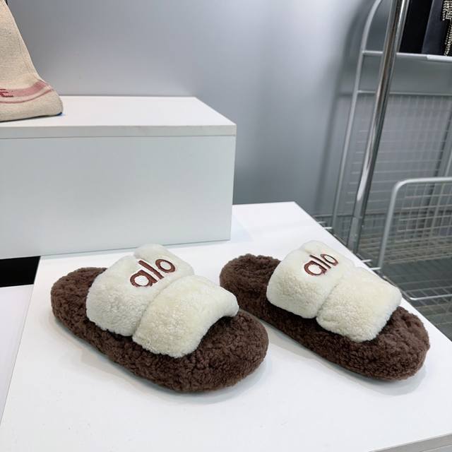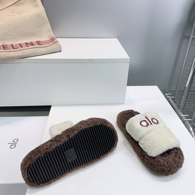 / 高品质出厂 !顶级品质Alo2025Ss 独家新品爆款羊羔毛厚底毛毛拖鞋!秋冬宝藏时髦单品!随意搭配怎么穿都好看 鞋面采用进口羊羔毛 内里垫脚羊羔毛 原版开模耐