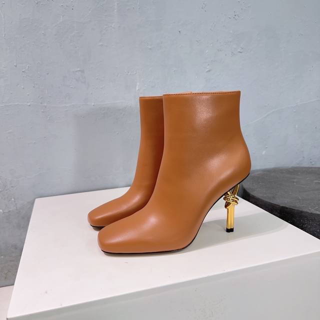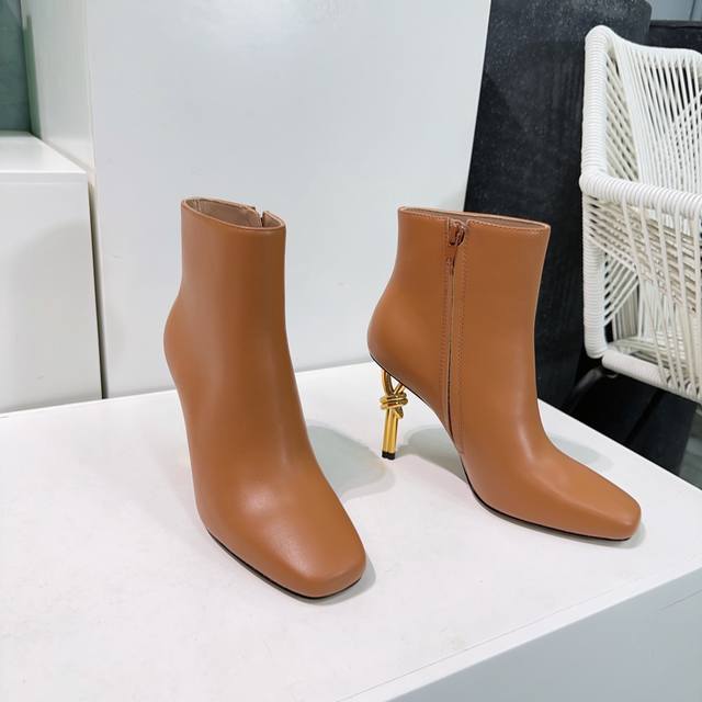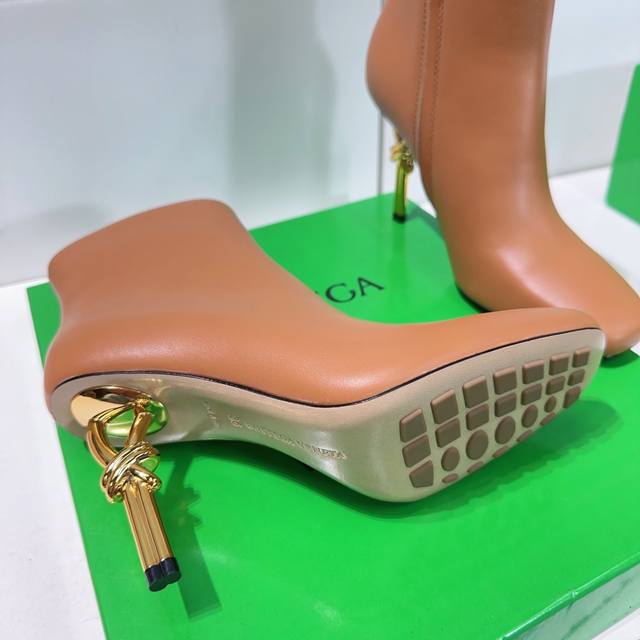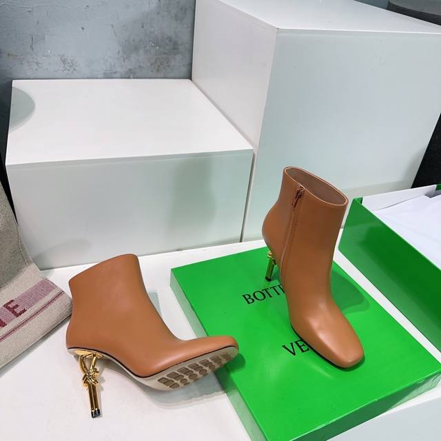 高品质出厂 !顶级品质bottega Veneta Ss新品爆款方头麻花金属跟高跟女士knot及踝靴短靴。Bv新款鎏金绳结高跟抢手大爆款,Ins&小红书巨多网红明星上身!上脚超性感!真的太美了!有理由刮起时尚大风,让人沦陷的舒适感 厚重而不累脚,原版定制面料 对比市场最高版本。这款方头鞋面超有高级感!高级穿着又仙女 简约时髦又有设计感 而且都非常非常好穿,特别是前掌注塑生胶鞋底部有防滑胶垫走一天也不会累,实用又有质感,采用意大利真皮注塑大底 生胶注塑工艺 防滑舒适 百搭适用任何场合!