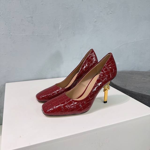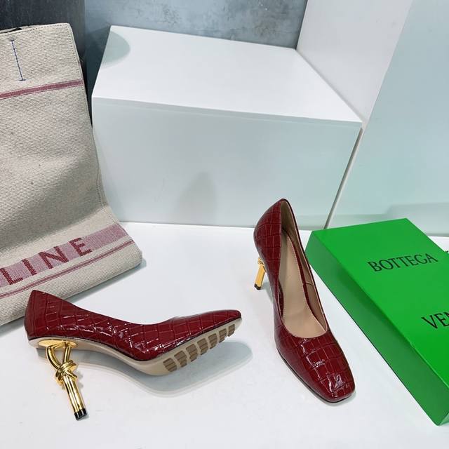 高品质出厂 !顶级品质bottega Veneta Ss秋冬新品爆款方头麻花金属跟高跟女士knot单鞋!。Bv新款鎏金绳结高跟抢手大爆款,Ins&小红书巨多网红