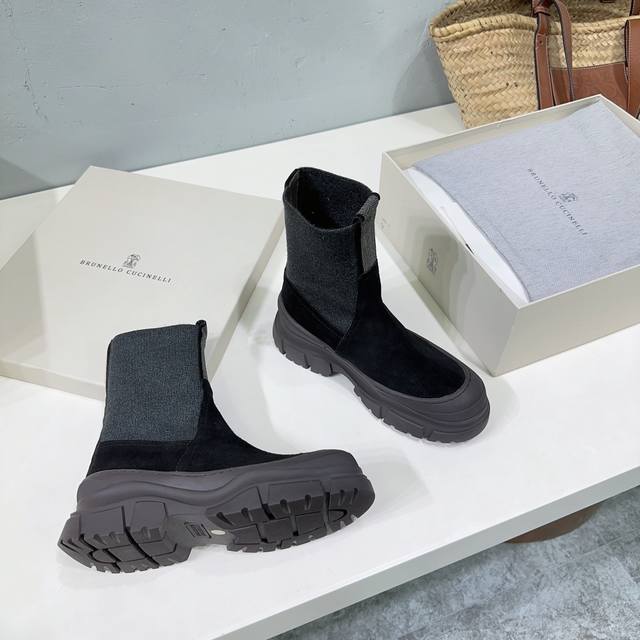 高品质出厂 !顶级品质!Brunello Cucinelli Bc Ss秋冬松糕厚底袜筒短靴、马丁靴系列新品!